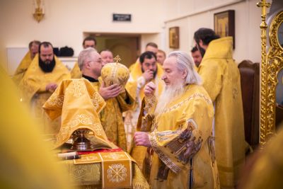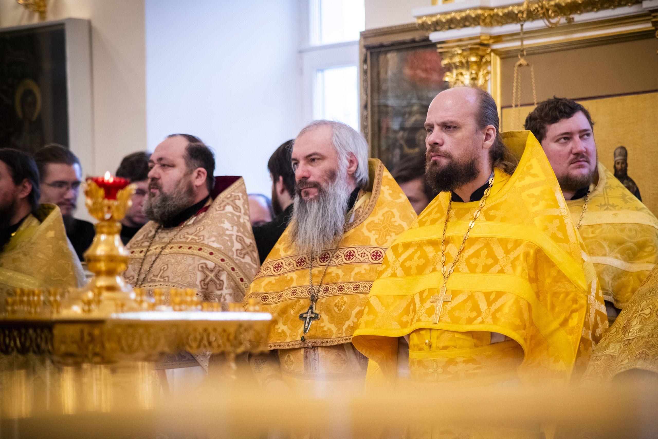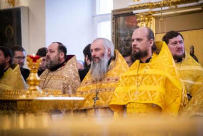 Его Высокопреосвященству сослужили епископ Альметьевский и Бугульминский Мефодий, епископ Елабужский Иннокентий, епископ Чистопольский и Нижнекамский Игнатий, а также наместники монастырей, отцы благочинные, настоятели храмов Казанской епархии.