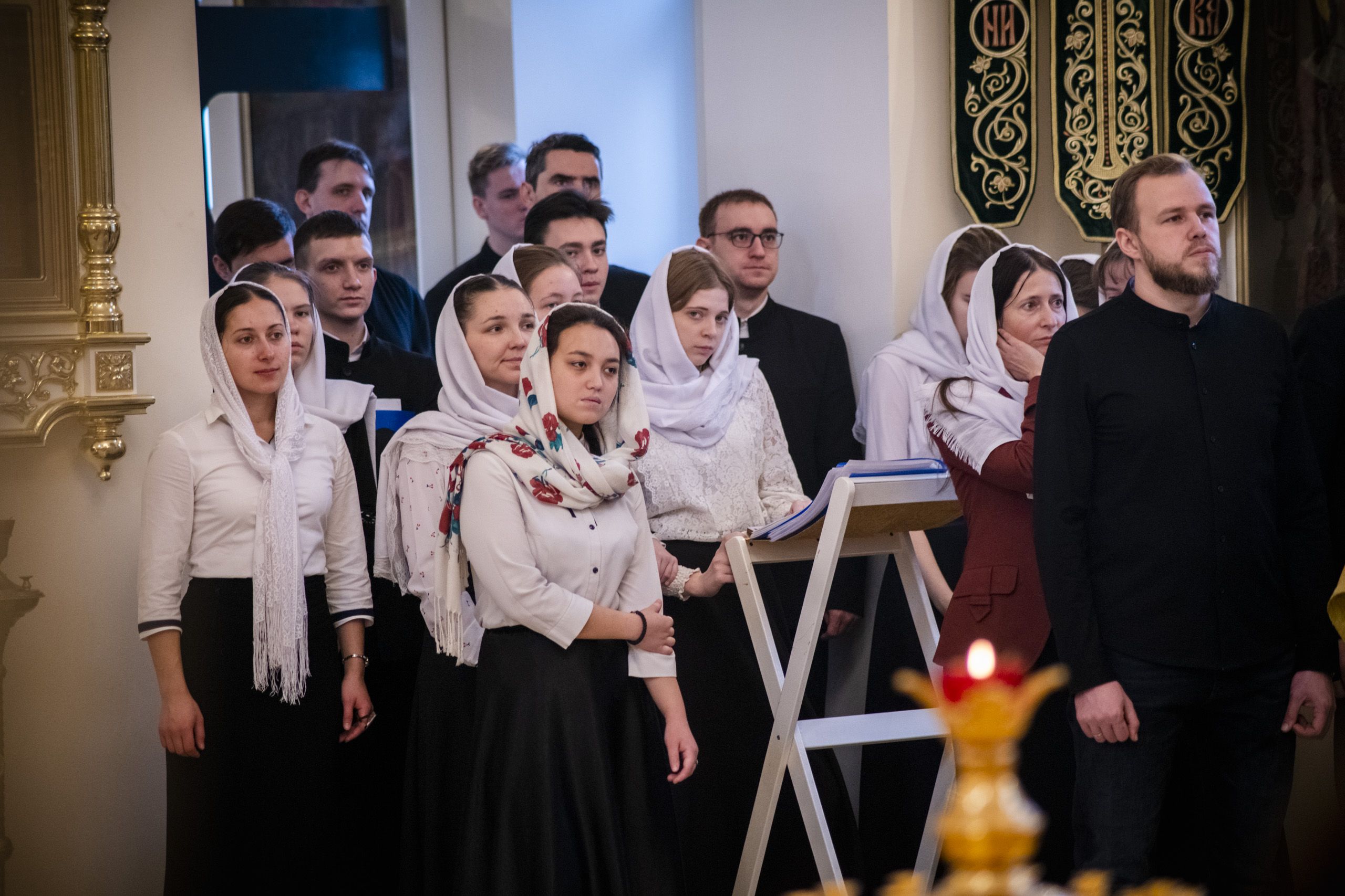 Песнопения Литургии исполнялись двумя хоровыми коллективами — архиерейским мужским хором под управлением Дениса Рогова и смешанным хором Казанской духовной семинарии под управлением Вероники Архиповой.