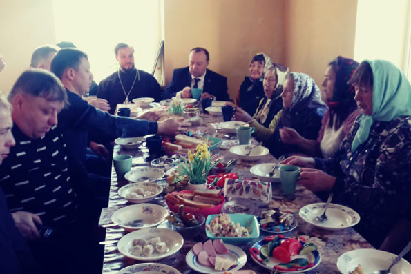 Затем состоялась общая трапеза, в ходе которой прихожане задавали вопросы руководителю Тюлячинского района.