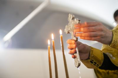 По благословению митрополита Казанского и Татарстанского Феофана молебен с чином водоосвящения совершил настоятель Введенского Кизического мужского монастыря игумен Пимен (Ивентьев).