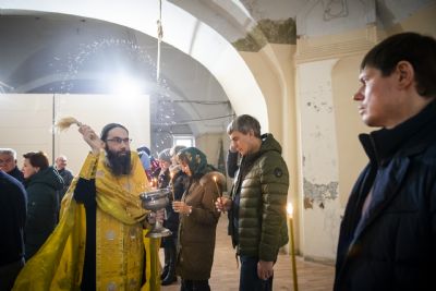 19 декабря, в день святителя Николая Чудотворца, в восстанавливающемся Николо-Гостинодворском храме Казани состоялся праздничный молебен.