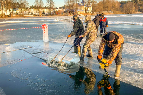 На льду Раифского озера началось возведение традиционного ледового городка.