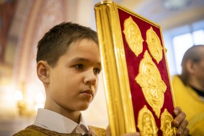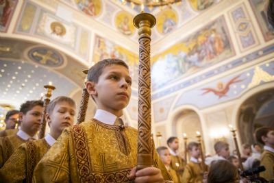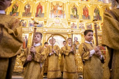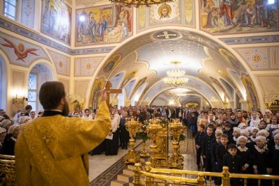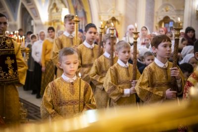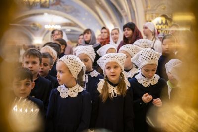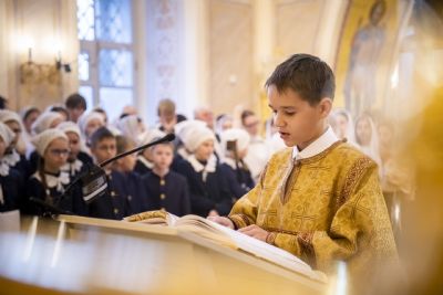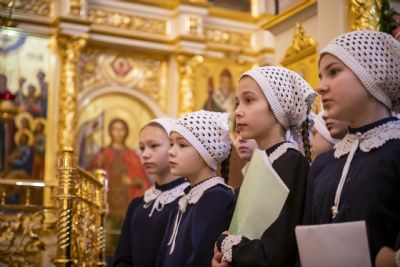 Богослужебные песнопения исполнили смешанный приходской хор и детский хор учащихся действующей при храме православной гимназии имени святителя Гурия Казанского.