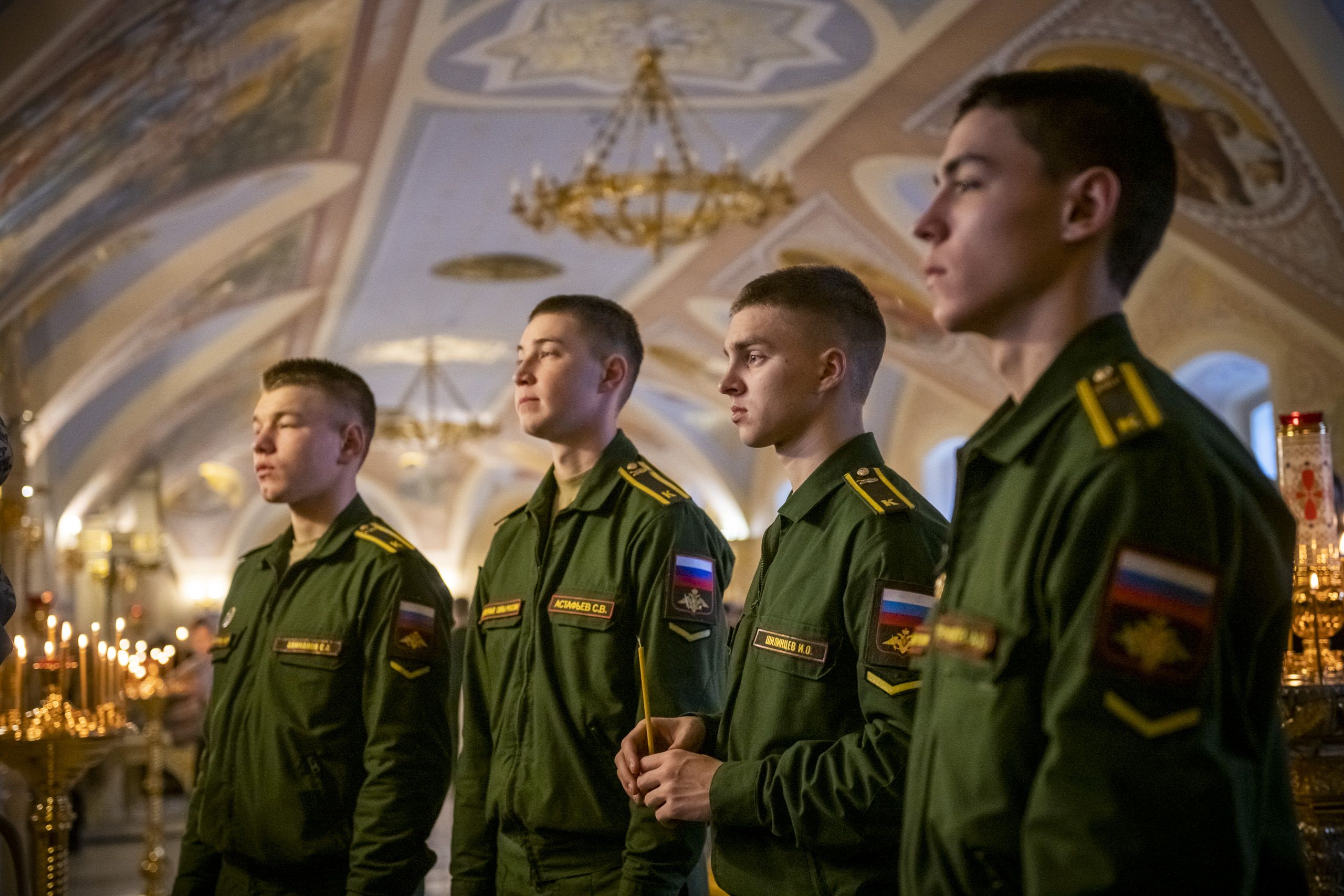 По окончании богослужения во дворе храма курсантами Казанского высшего танкового командного училища была организована полевая кухня.