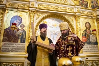 В завершение владыка Иннокентий поздравил настоятеля, духовенство и прихожан храма с очередной годовщиной замечательного события. Отец Алексий в ответном слове поблагодарил Его Преосвященство за совместную молитву и преподнес в дар архипастырю икону Спасителя.