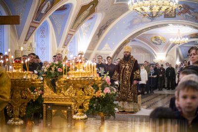 Викарию Казанской епархии сослужили настоятель храма, благочинный I Казанского округа протоиерей Алексий Чубаков, секретарь Казанского епархиального управления протоиерей Владимир Самойленко, настоятель Введенского Кизического мужского монастыря города Казани игумен Пимен (Ивентьев), клирики прихода.