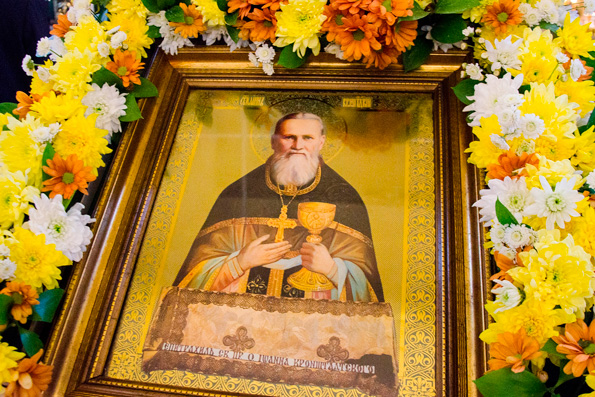 По запричастном стихе со словом проповеди, посвящённой памяти святого Иоанна Кронштадтского, к собравшимся обратился иерей Александр Ермолин.