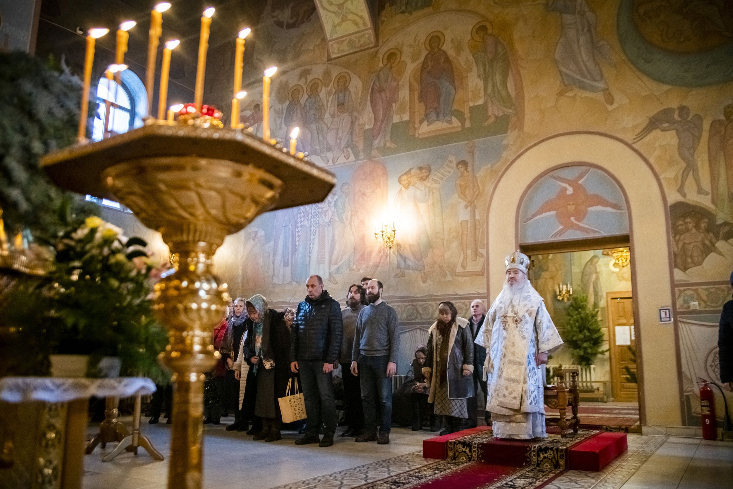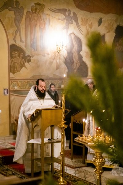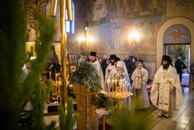 В завершение богослужения правящий архиерей поздравил духовенство, матушку Сергию с сестрами и мирян с Сочельником и наступающим праздником Рождества.