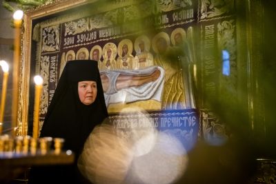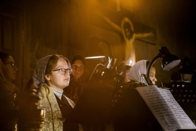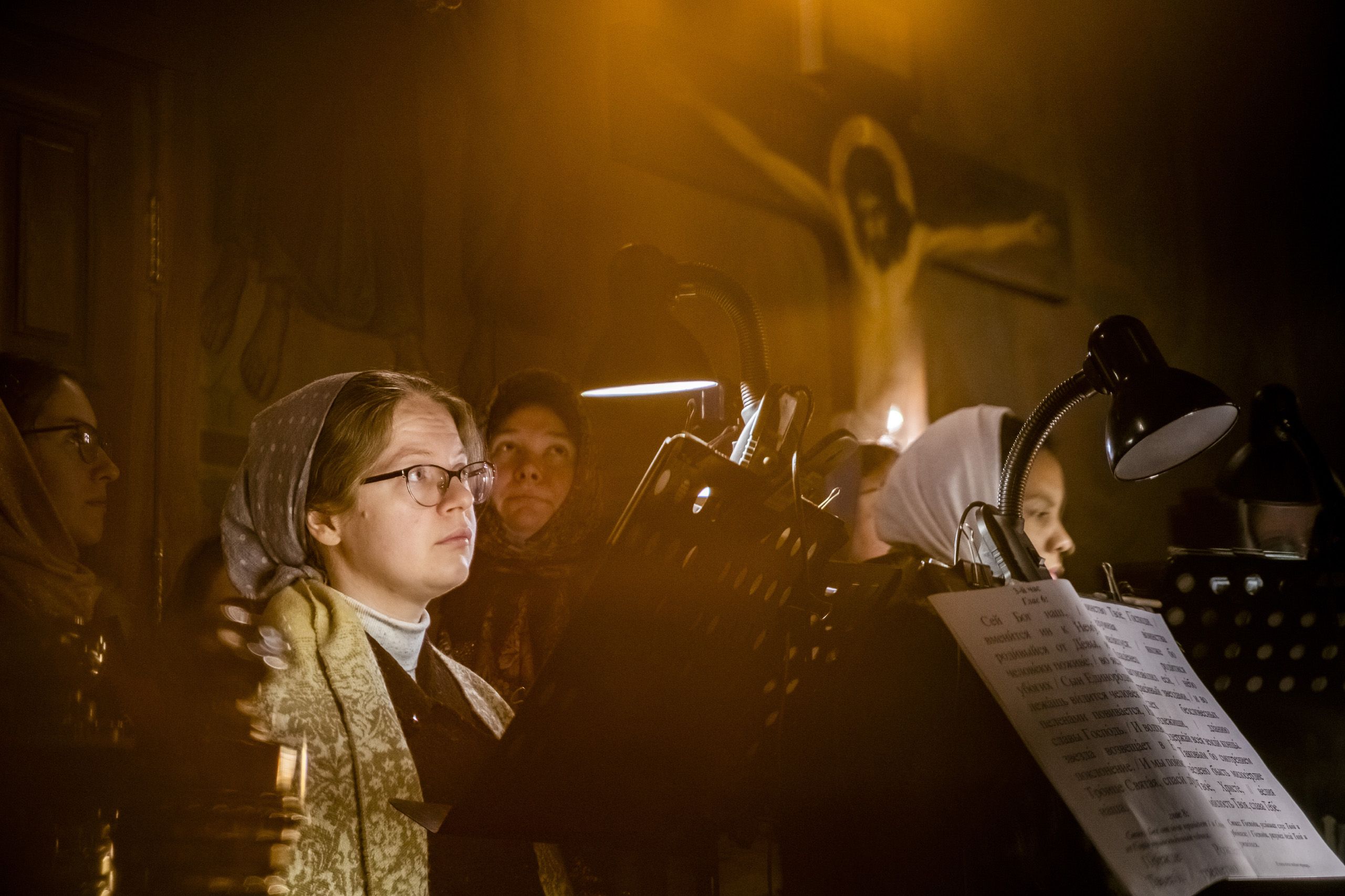 Песнопения исполнялись смешанным хором Казанско-Богородицкого мужского монастыря под управлением монахини Амвросии (Кочережкиной).