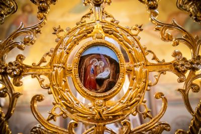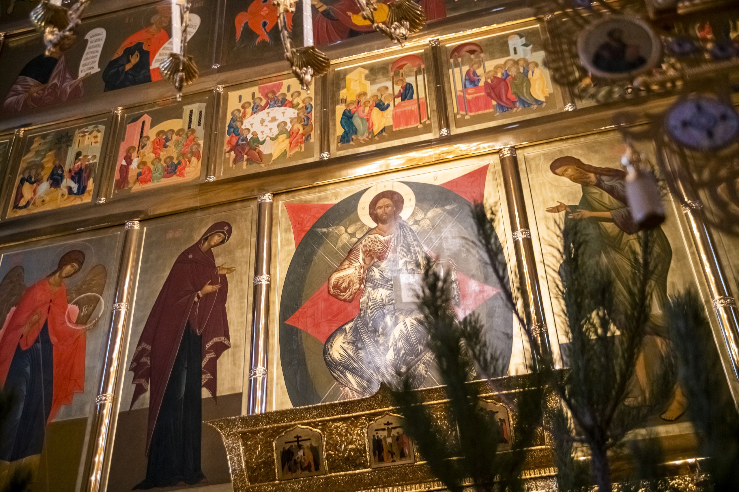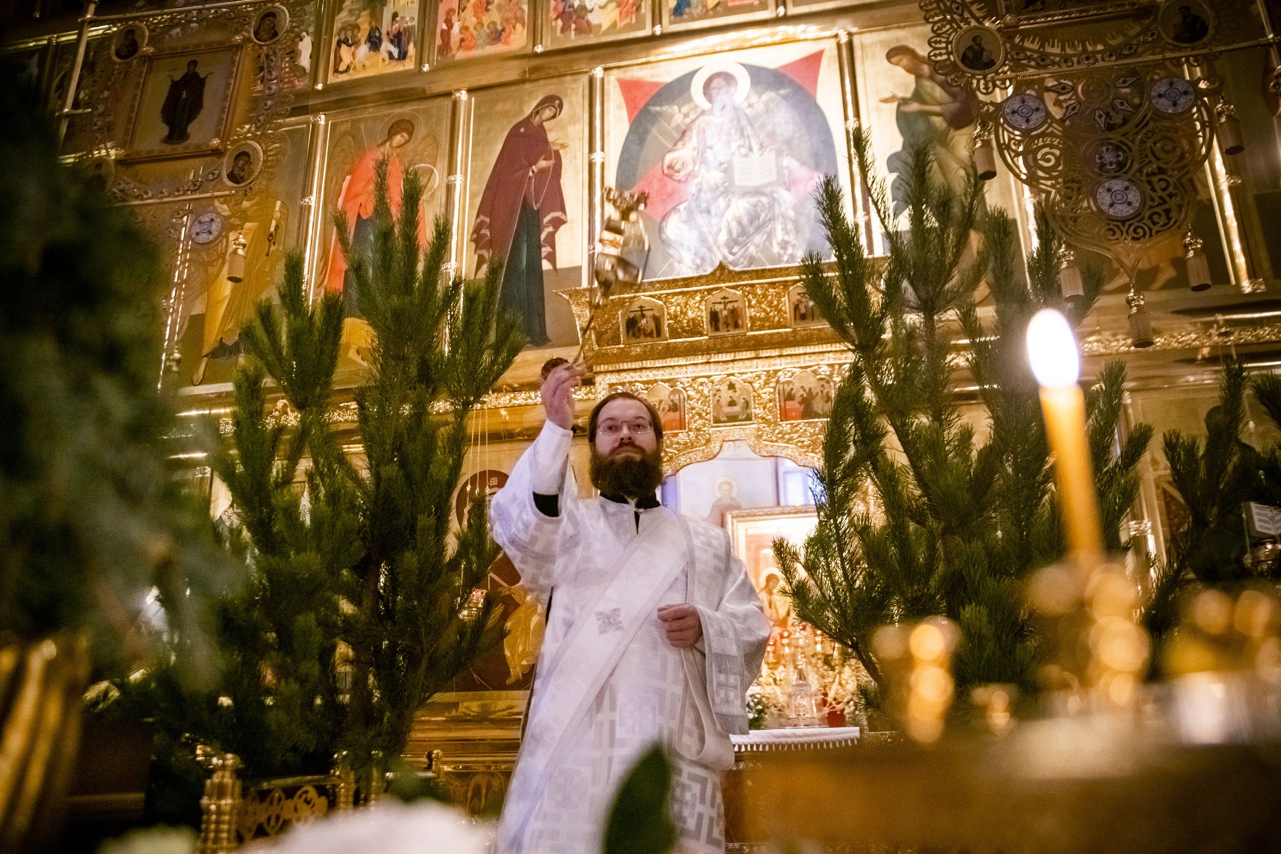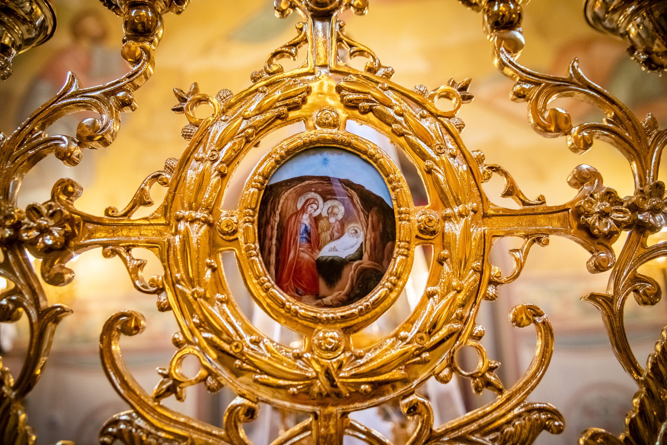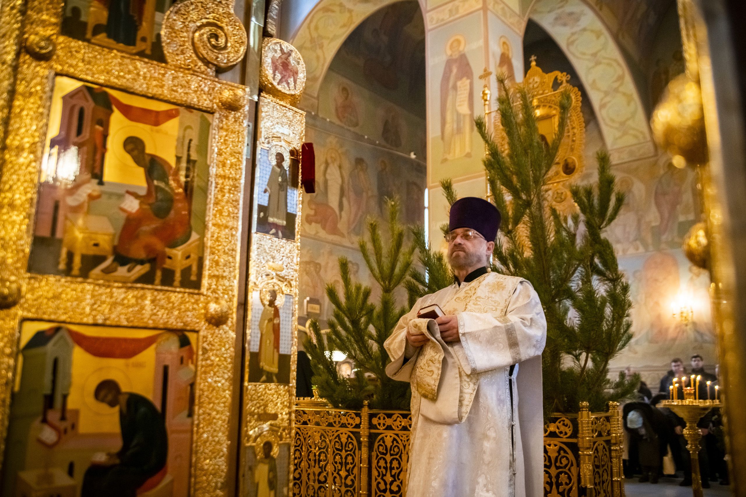 По отпусте Литургии из алтаря на середину храма архипастырь вынес икону Рождества Христова. Священнослужители пропели тропарь праздника «Рождество Твое, Христе Боже наш…» и кондак праздника «Дева днесь Пресущественнаго раждает…»