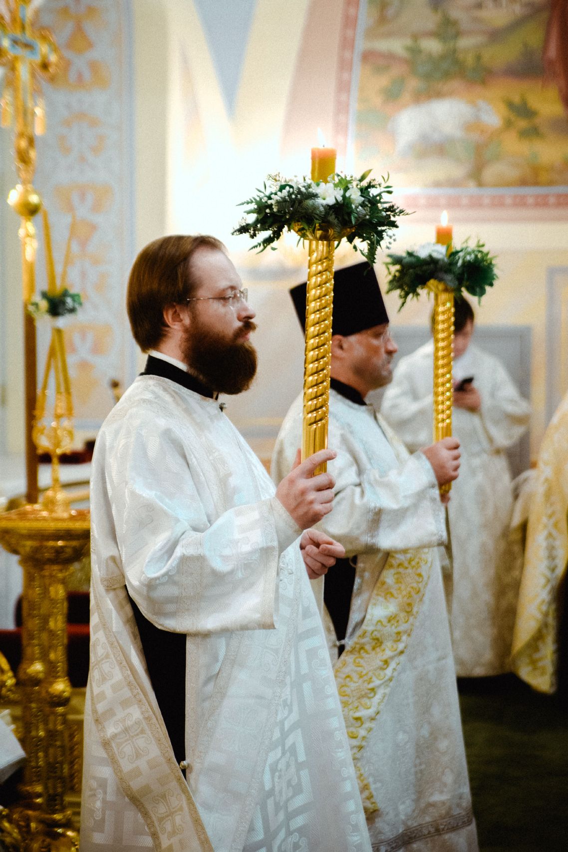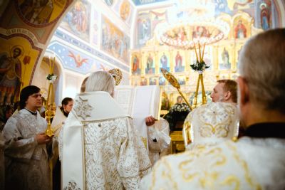 Богослужебные песнопения исполнялись смешанным хором Духосошественской церкви под управлением Ольги Ворониной.