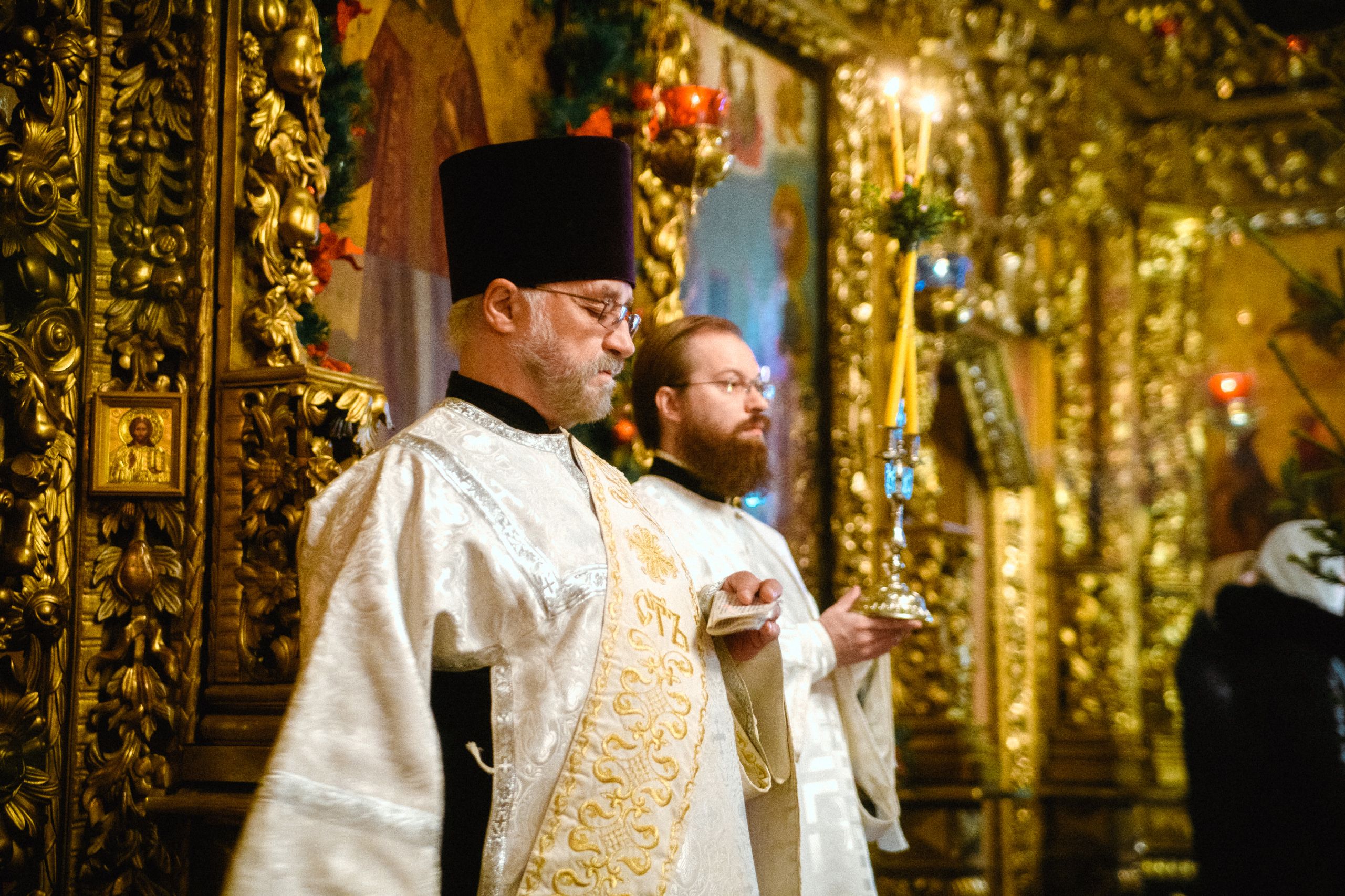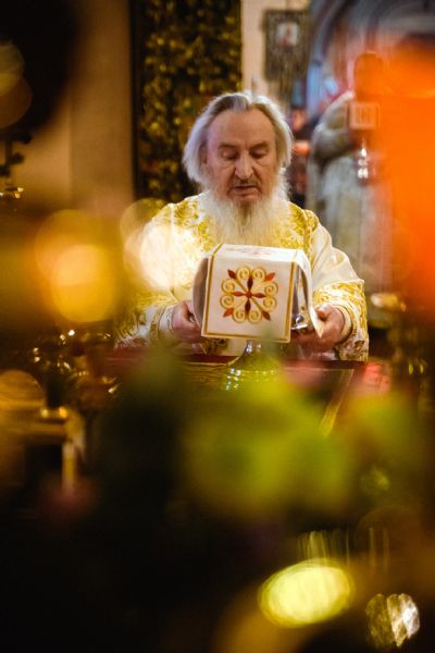По запричастном стихе протоиерей Сергий Титов огласил Рождественское послание Святейшего Патриарха Московского и всея Руси Кирилла архипастырям, пастырям, диаконам, монашествующим и всем верным чадам Русской Православной Церкви.