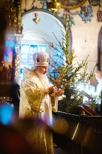 По окончании Литургии глава митрополии поздравил духовенство и мирян со светлым праздником Рождества Христова и обратился с архипастырским словом: