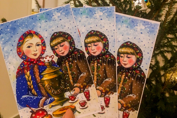 Художник Анна Гаранина изготовила к празднику рождественские открытки, которые можно было получить в лавке храма.