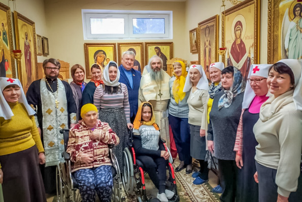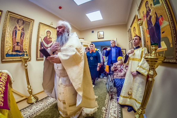Работники и постояльцы хосписа, а также сестры милосердия причастились Святых Христовых Таин и поздравили друг друга с Рождеством.