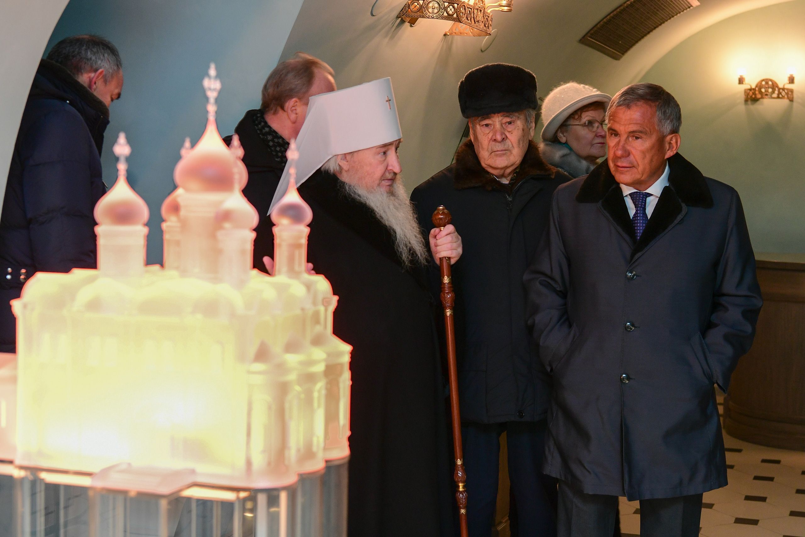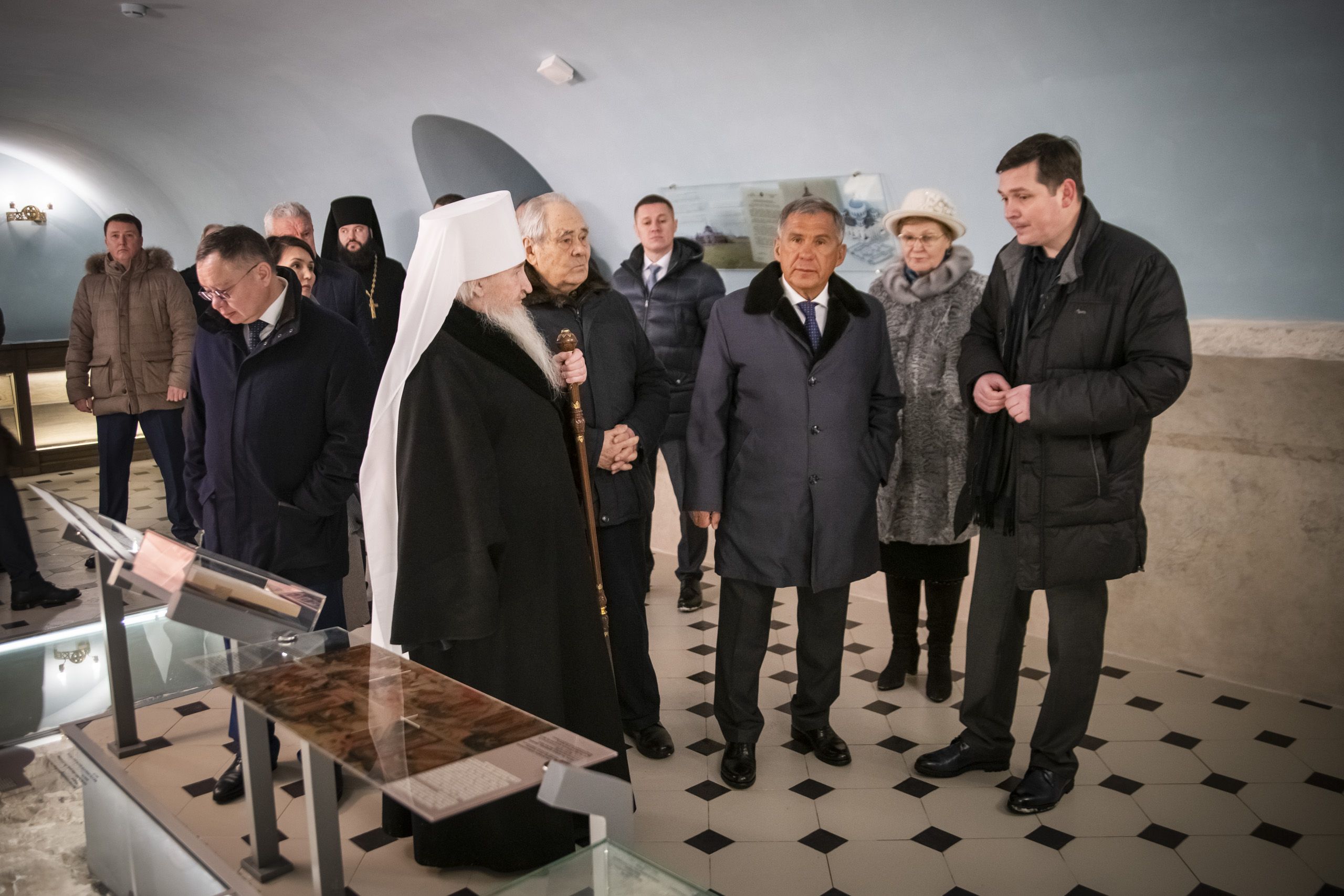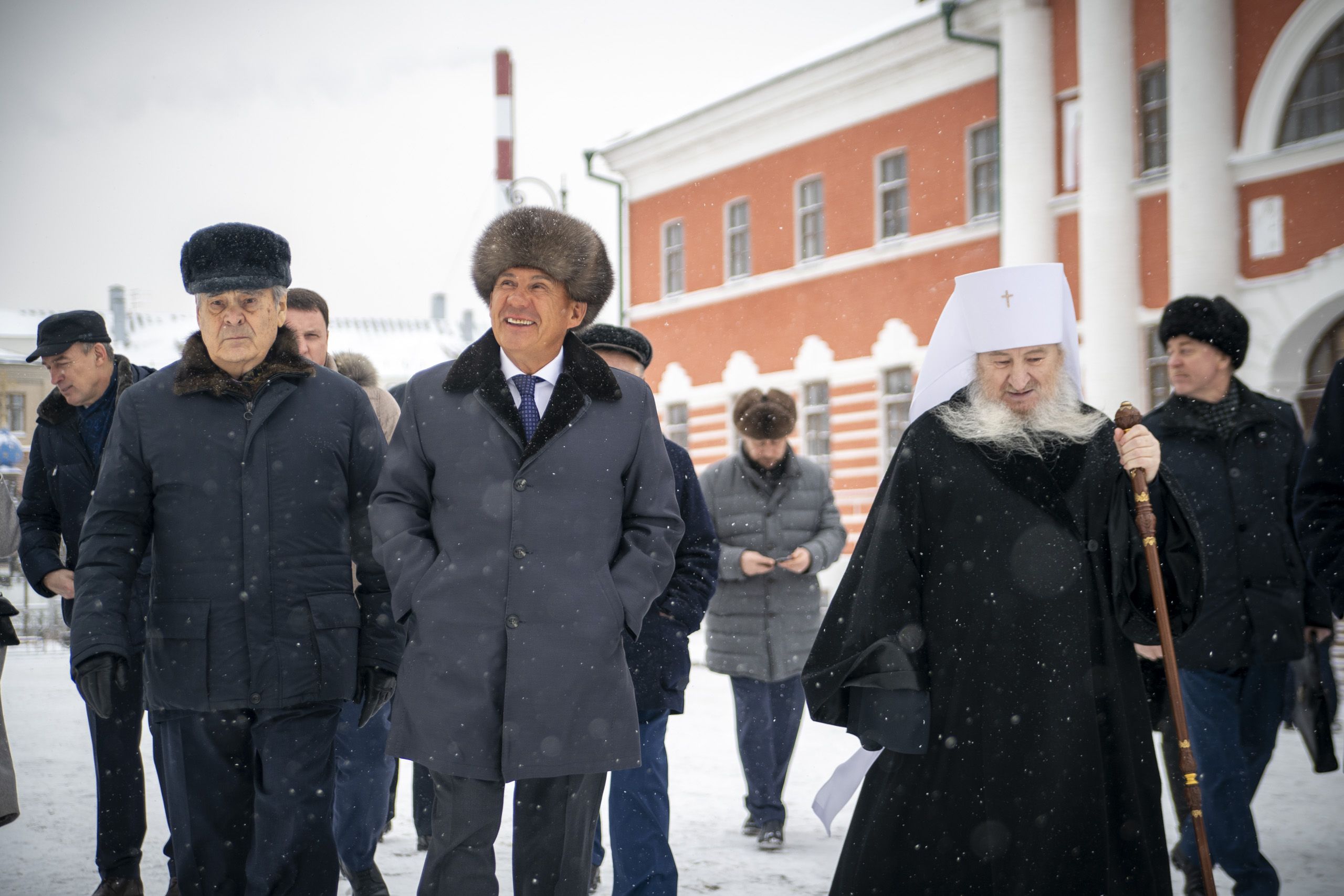 Встреча началась с посещения собора Казанской иконы Божией Матери, воссоздаваемого с апреля 2016 года на основании Указа Президента РТ от 4 ноября 2015 года. Институтом ГУП «Татинвестгражданпроект» на благотворительной основе подготовлена проектно-сметная документация по воссозданию собора. По историческим материалам, фотографиям, рисункам и чертежам удалось полностью воссоздать первоначальный облик храма.