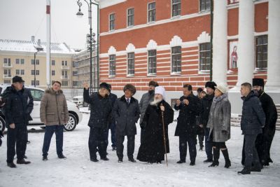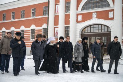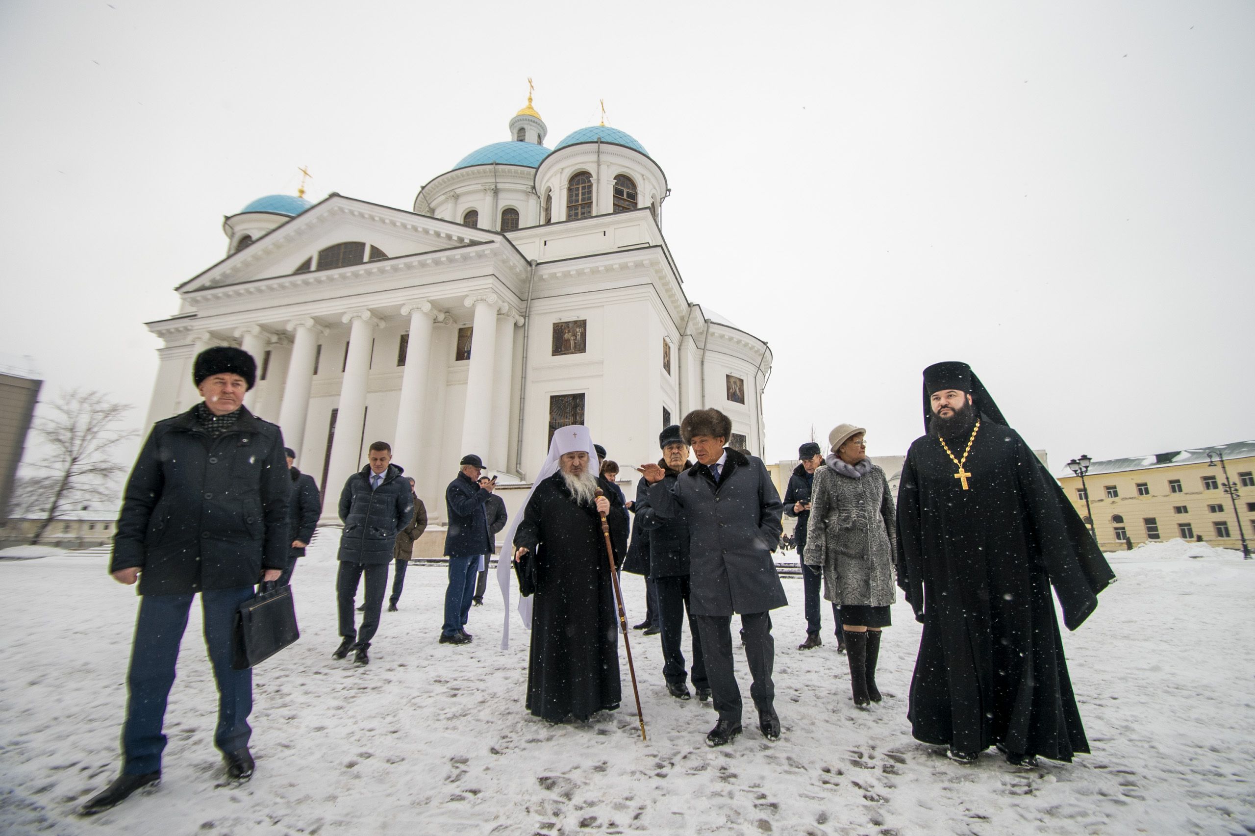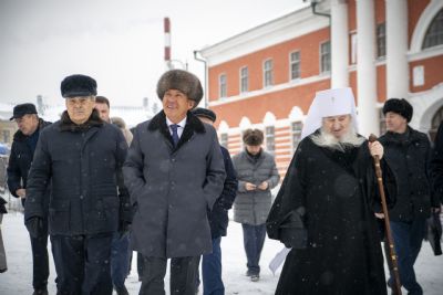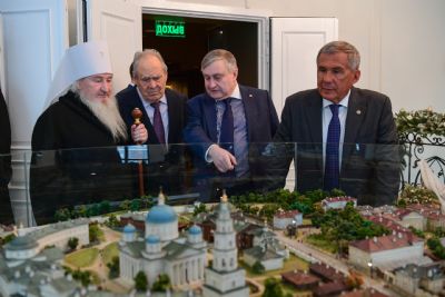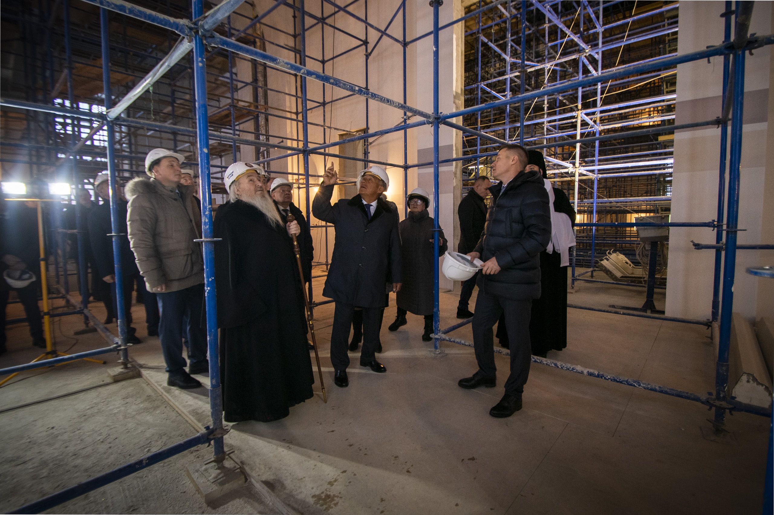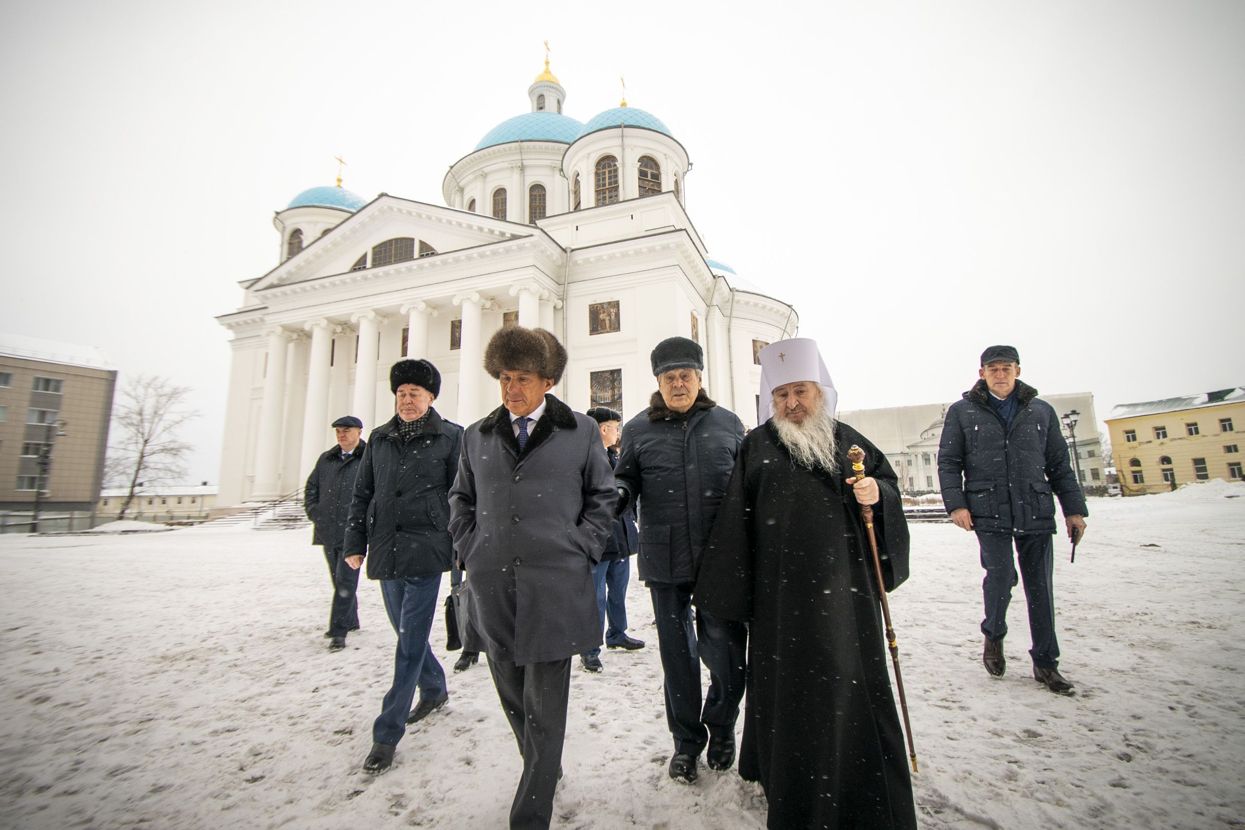 Встреча началась с посещения собора Казанской иконы Божией Матери, воссоздаваемого с апреля 2016 года на основании Указа Президента РТ от 4 ноября 2015 года. Институтом ГУП «Татинвестгражданпроект» на благотворительной основе подготовлена проектно-сметная документация по воссозданию собора. По историческим материалам, фотографиям, рисункам и чертежам удалось полностью воссоздать первоначальный облик храма.
