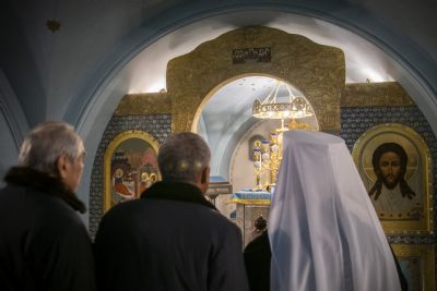 В настоящее время завершаются работы по устройству иконостаса и места обретения Казанской иконы Божией Матери в Пещерном храме.