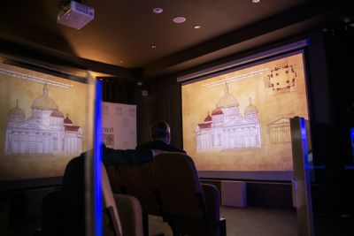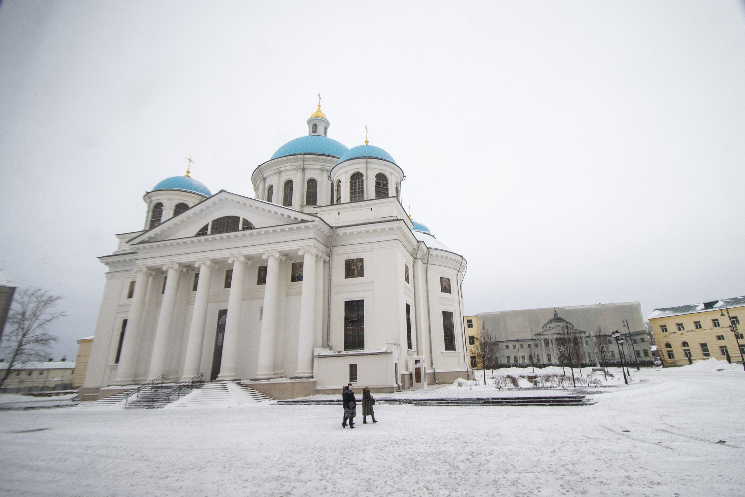 Гостям рассказали о планировке храма и его убранстве, архитектурных решениях и лепном декоре. Так, проект лепного декора собора выполнен на основании архивных документов — чертежей Ивана Старова, архитектора собора Казанской иконы Божией Матери Богородицкого монастыря. Чертежи были эскизными, поэтому за образец взяли убранство главного аналога храма — Троицкого собора Александро-Невской лавры в Санкт-Петербурге, архитектором которого также является Иван Старов. Также были использованы фотографии собора Казанской иконы Богородицы до его разрушения.