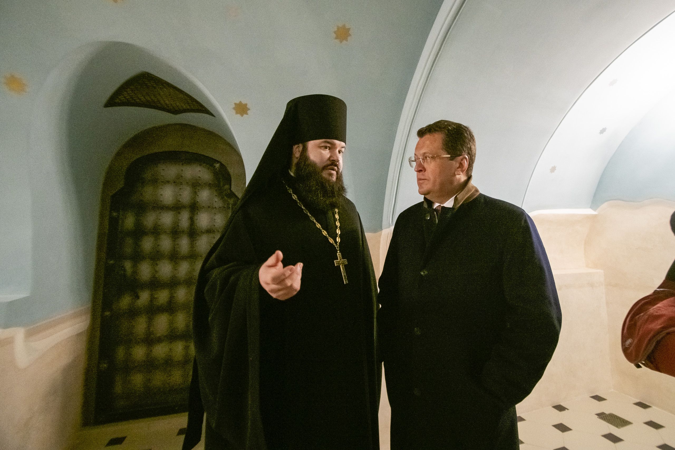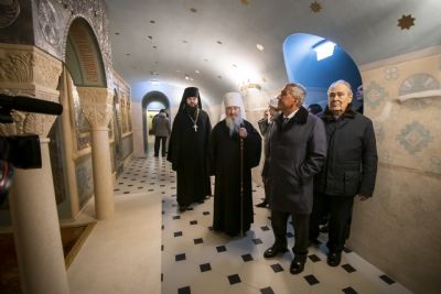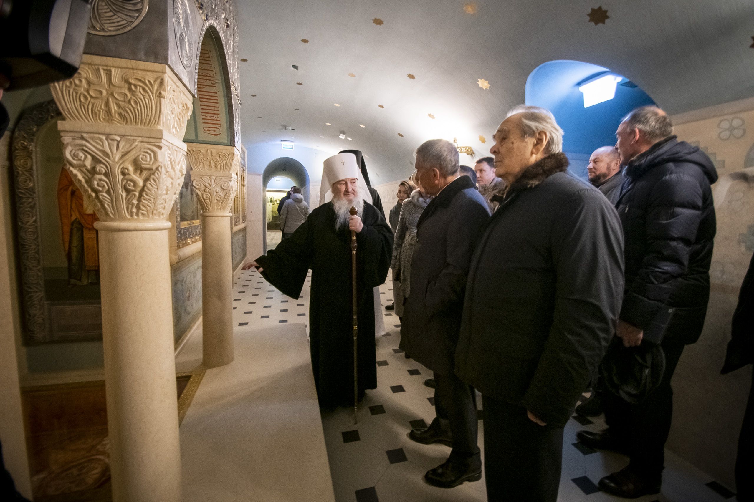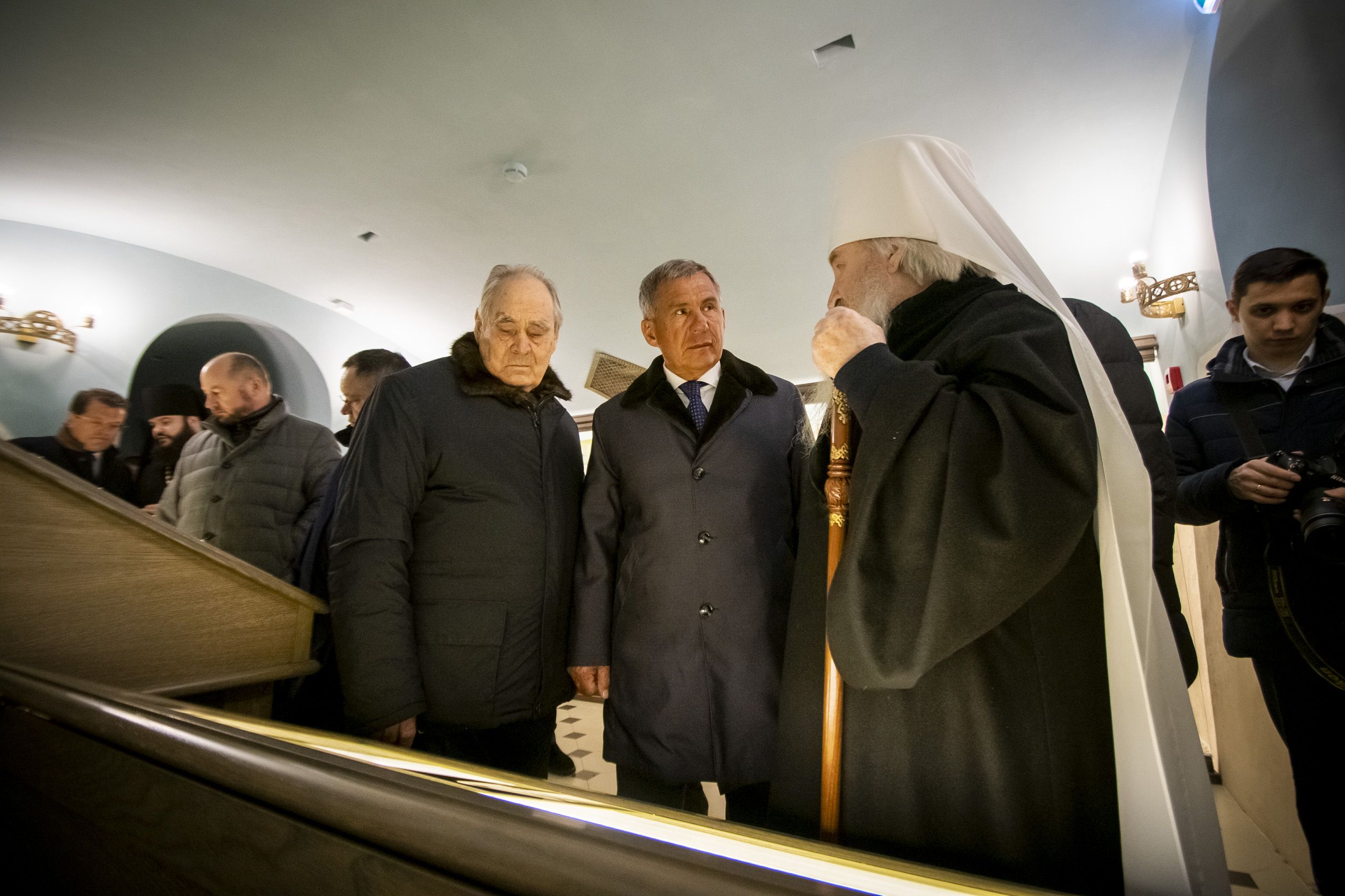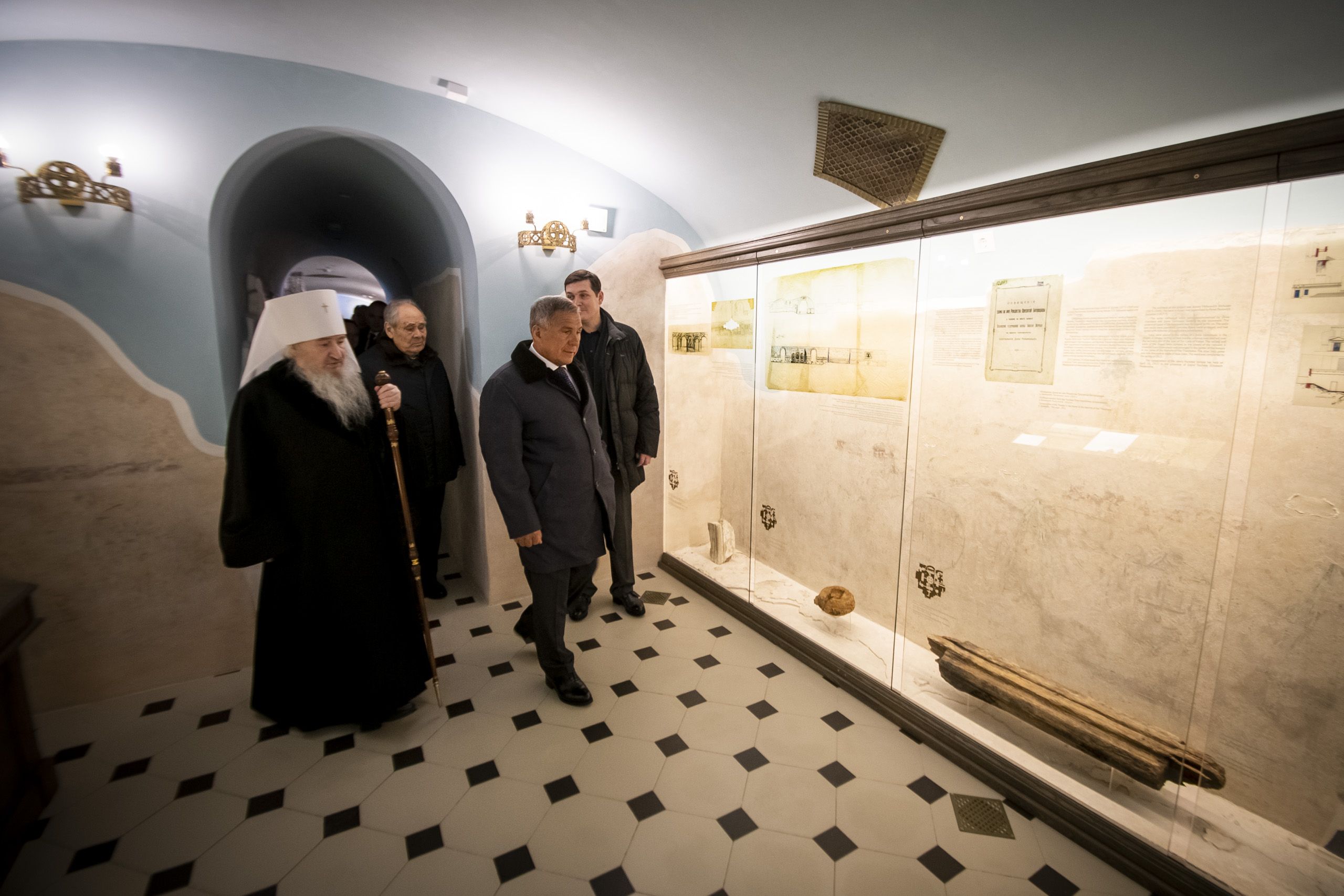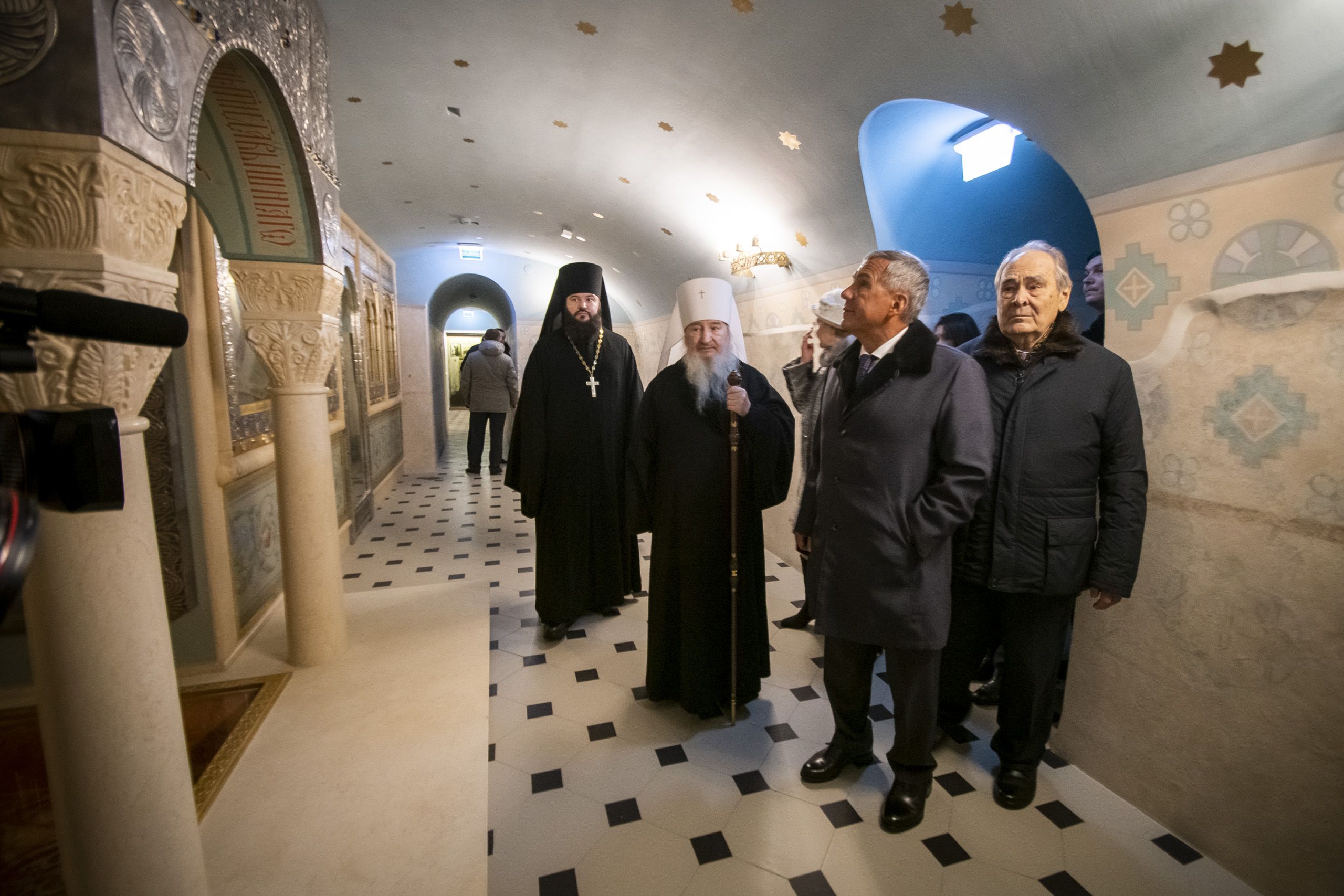 В сопровождении митрополита Феофана Р. Минниханов и М. Шаймиев осмотрели Пещерный храм. Здесь были отреставрированы сохранившиеся фрагменты храма, укреплены исторические фундаменты. На восстановленных фундаментах выполнена несущая монолитная конструкция плиты, на которой воздвигнут верхний храм.