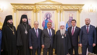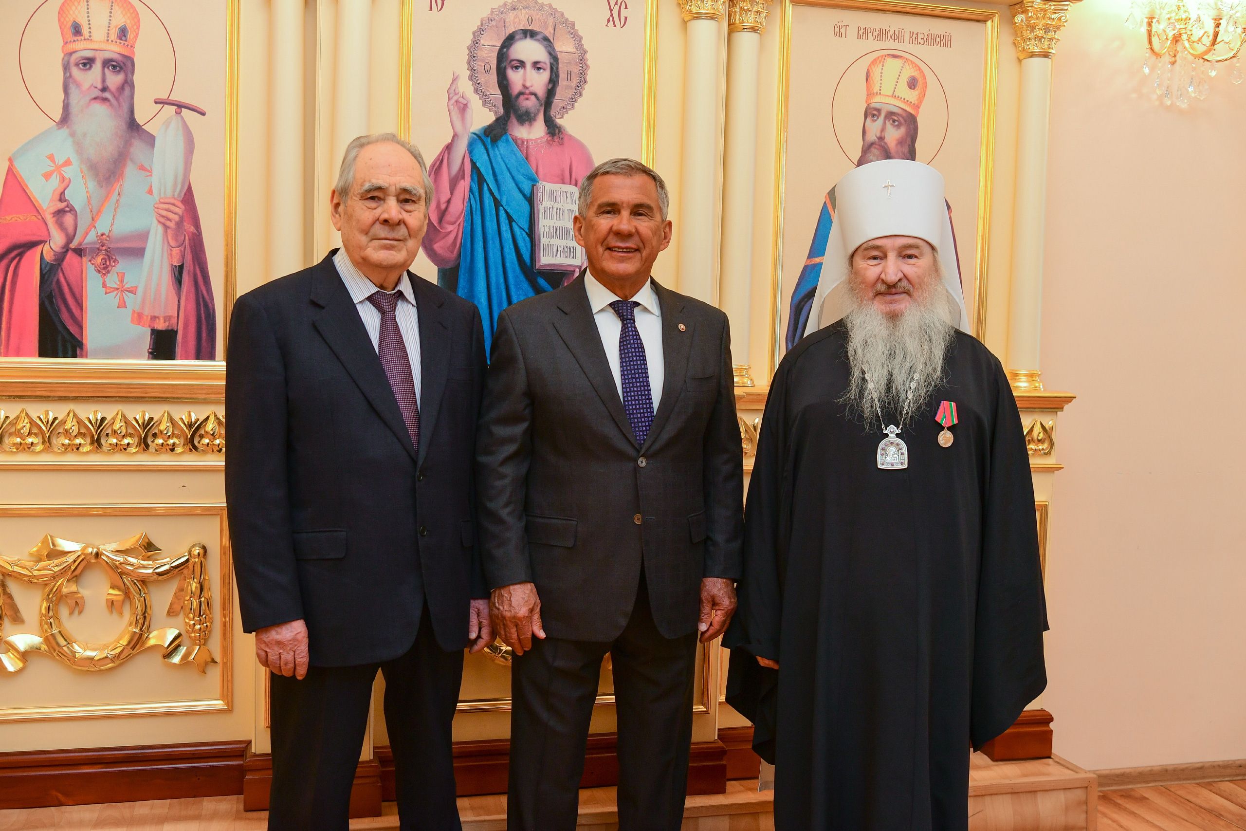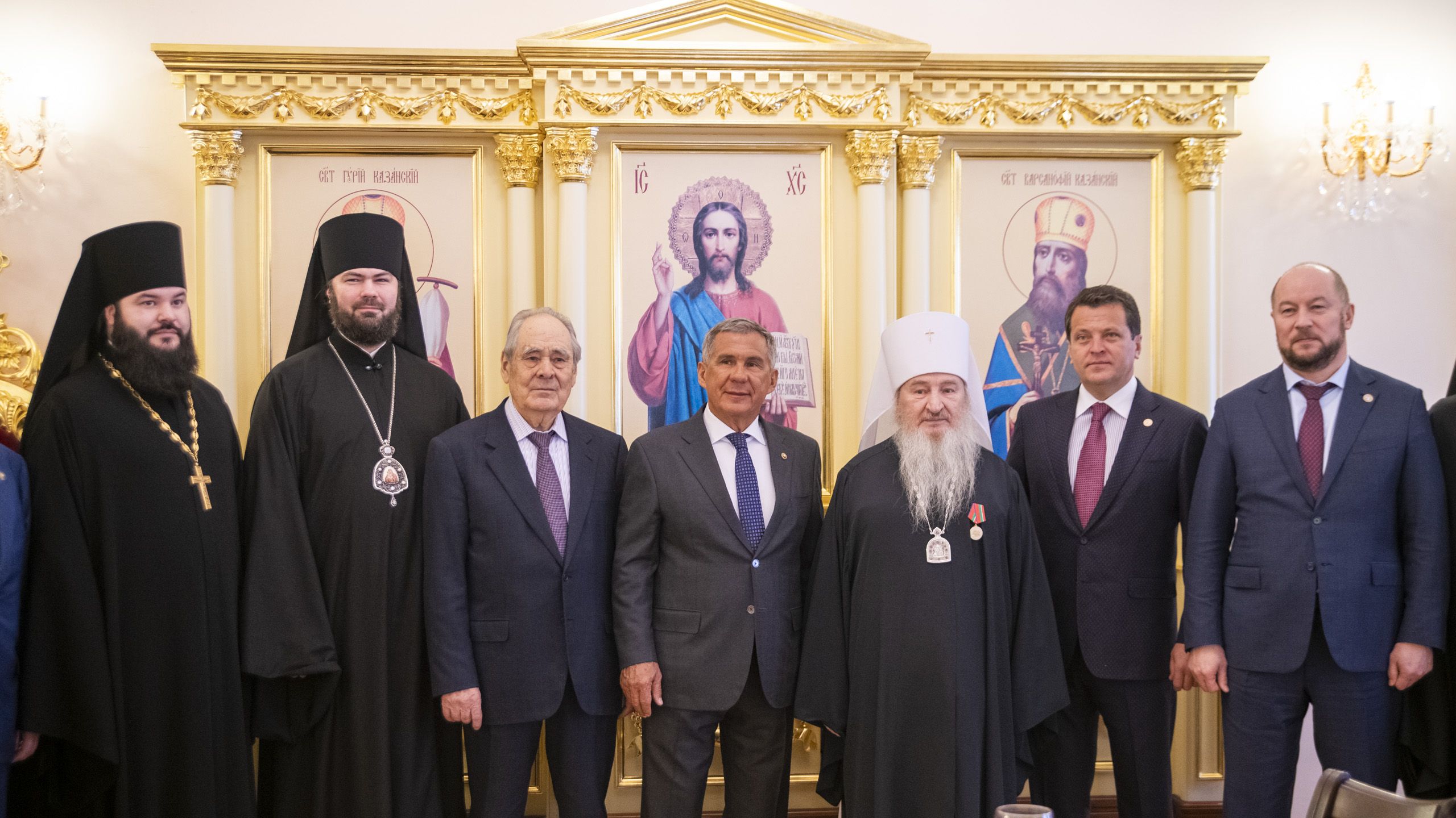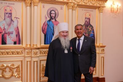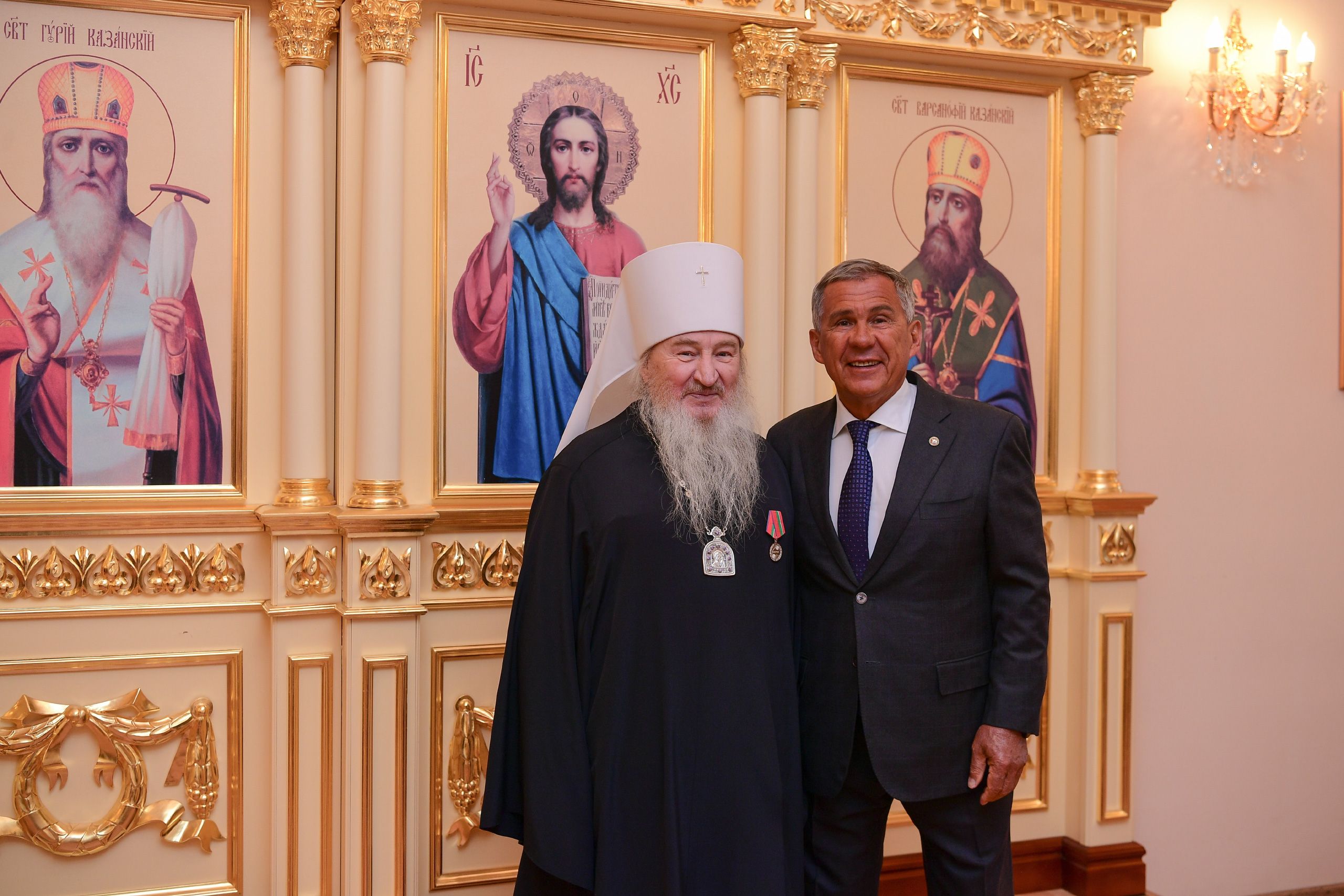 Глава Татарстанской митрополии, в свою очередь, отметил, что высокая награда является свидетельством тесного взаимодействия Церкви и государства в части укрепления межнационального и межконфессионального мира и согласия. В ходе беседы митрополит Феофан рассказал о деятельности Православной Церкви в Татарстане, возрождении и строительстве храмов, взаимоотношениях Казанской епархии и Духовного управления мусульман РТ.