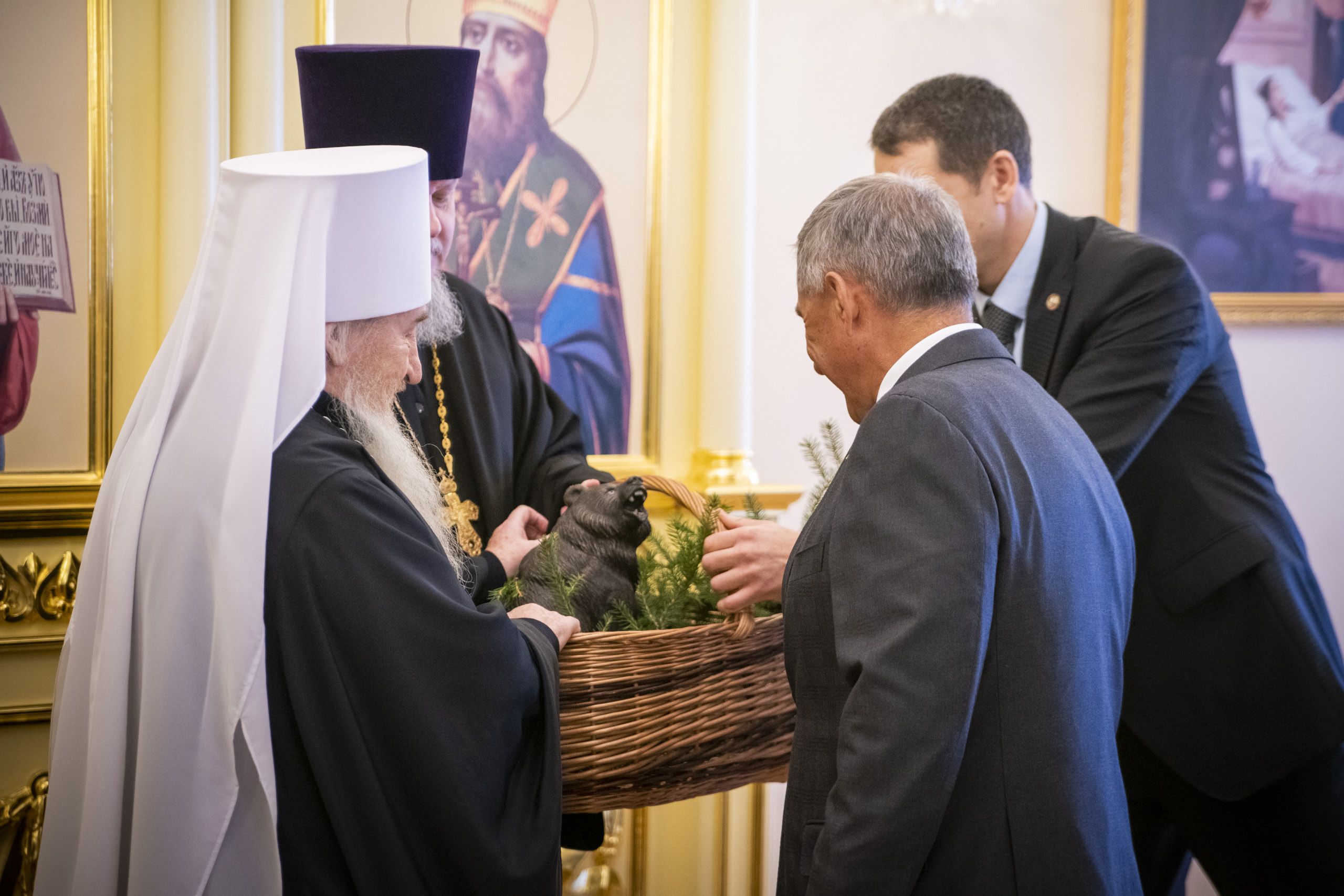 В завершение встречи митрополит Феофан преподнес Рустаму Минниханову и Минтимеру Шаймиеву памятные подарки. Затем была сделана общая фотография.