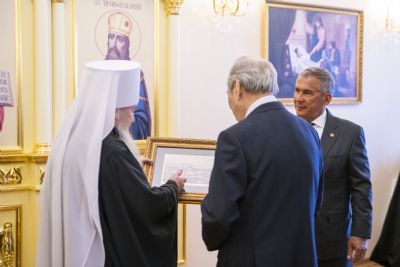 Митрополит Феофан высоко оценил усилия Республиканского Фонда «Возрождение» и лично Минтимера Шаймиева по воссозданию собора Казанской иконы Божией Матери.