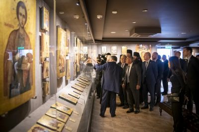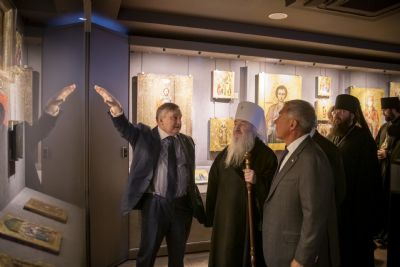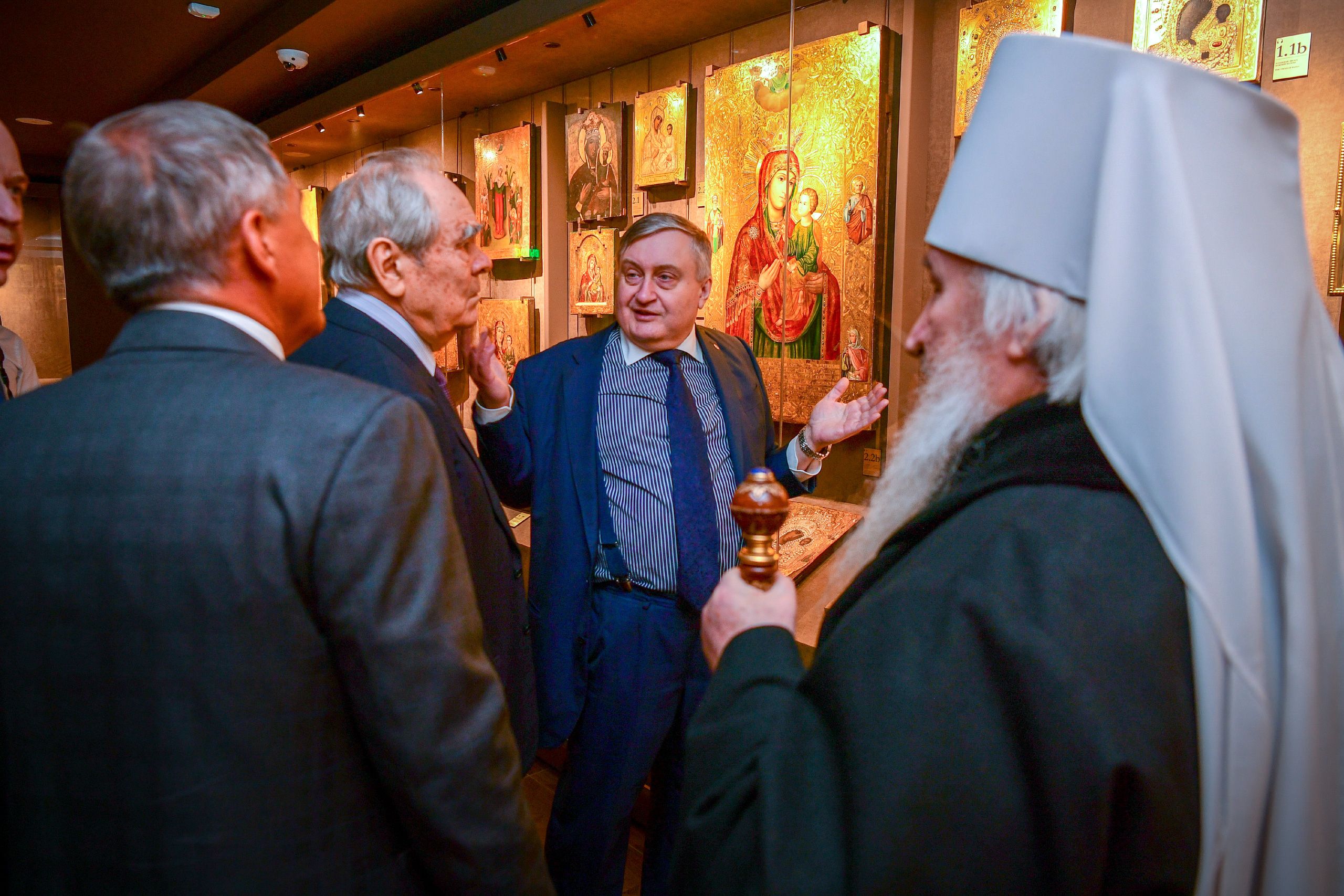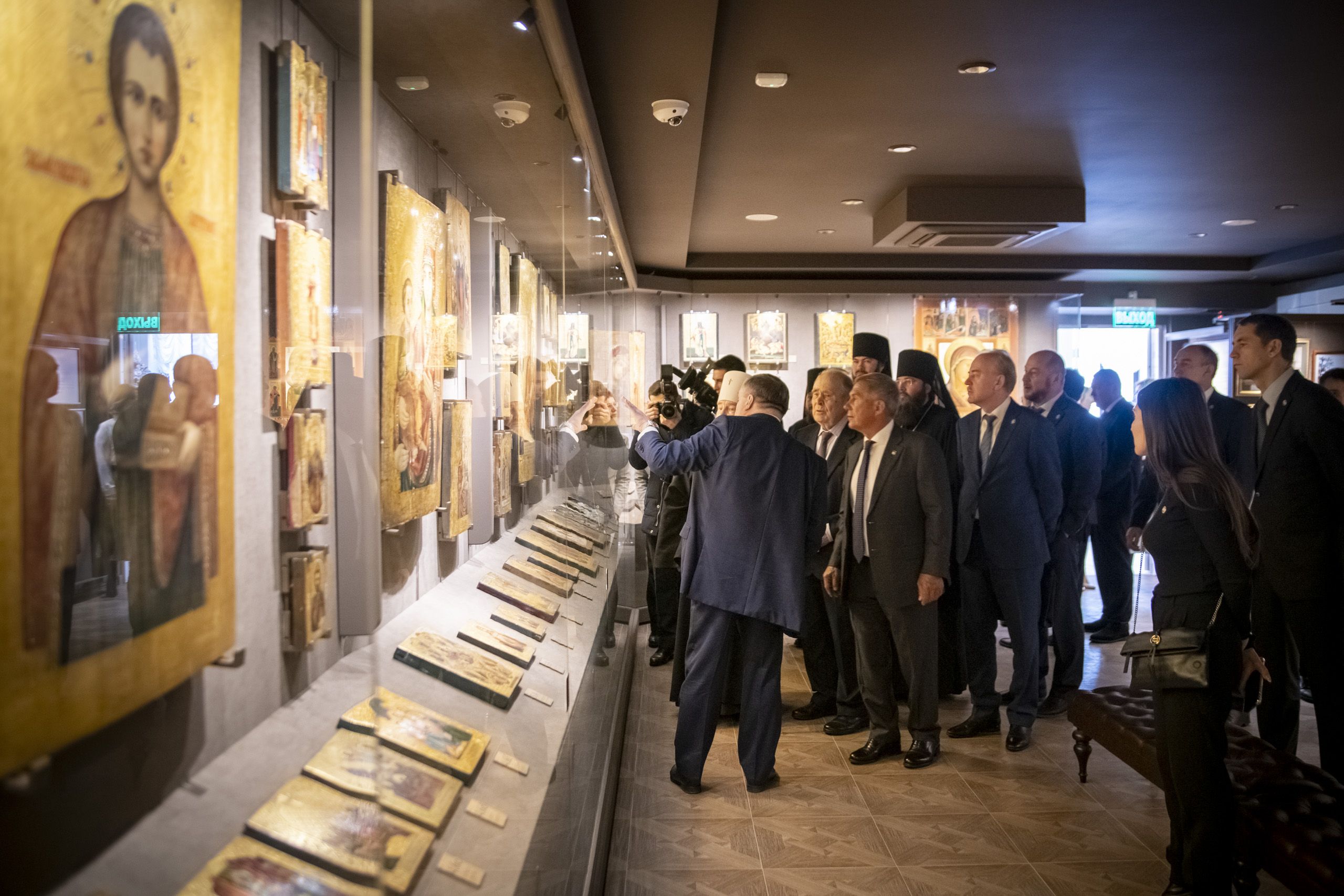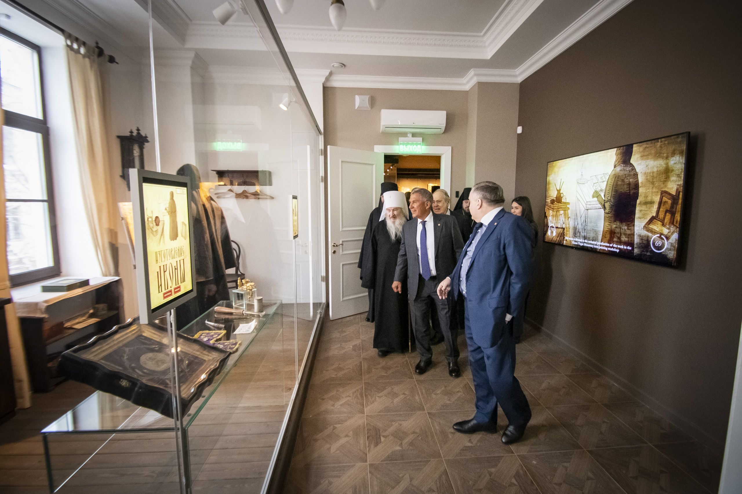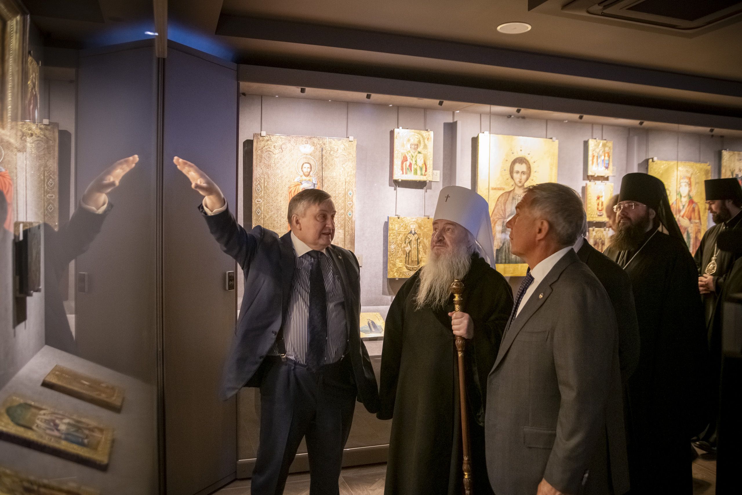После посещения собора Рустам Минниханов, Минтимер Шаймиев, митрополит Феофан посетили Музей Казанской иконы Божией Матери, расположенный напротив Казанско-Богородлицкого монастыря (ул. Большая Красная, 10). Музей открылся для посетителей 27 сентября прошлого года. Основатель музея, председатель Совета директоров ПАО «Ак Барс Банк» Валерий Сорокин провел экскурсию по экспозиции. Он ознакомил гостей с коллекцией икон, написанных в Богородицкой обители.