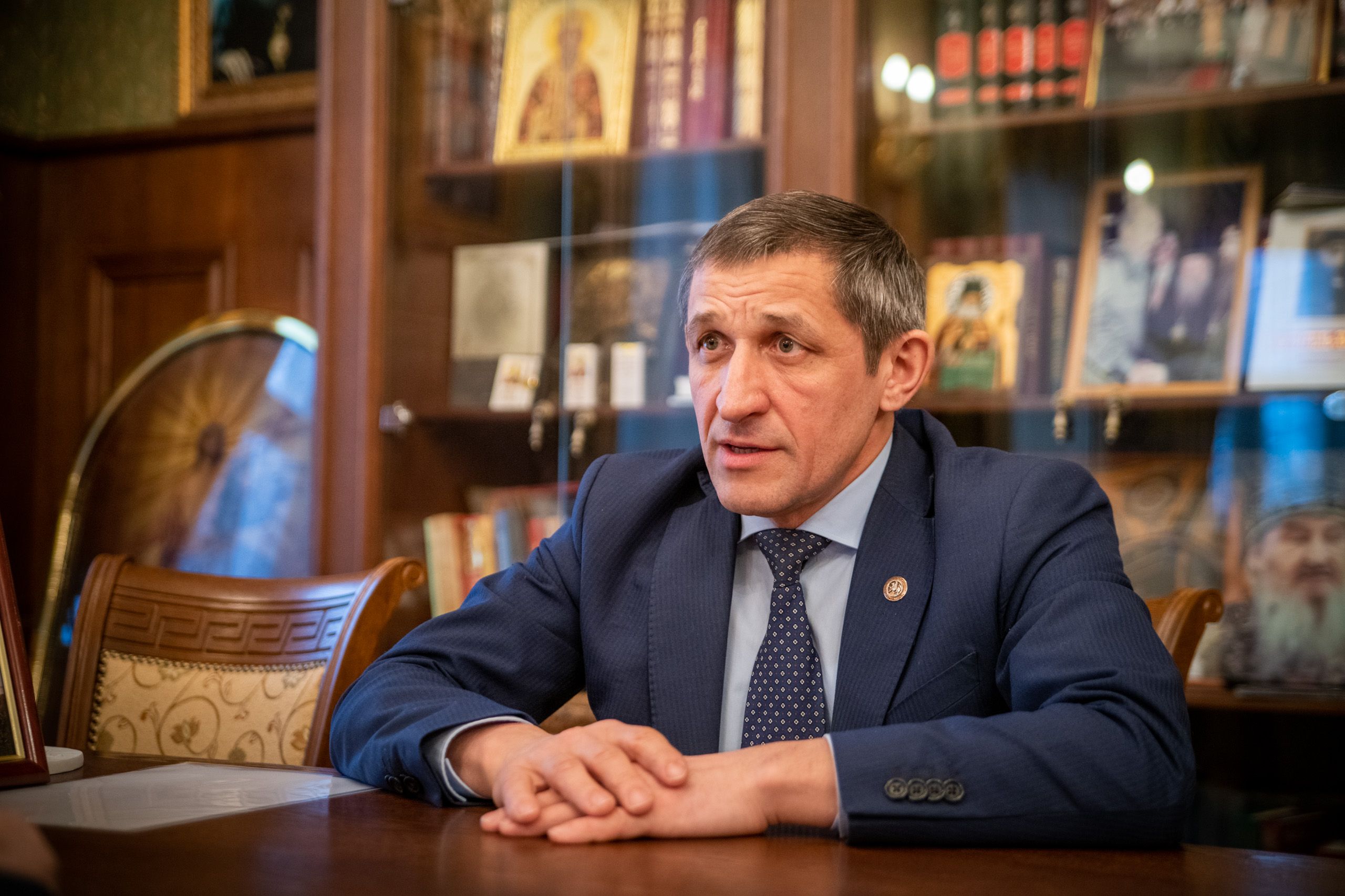 Митрополит Феофан рассказал гостю об основных направлениях деятельности Татарстанской митрополии. Архипастырь отметил, что реализуемые проекты находят всестороннюю поддержку со стороны республиканских и муниципальных властей. Владыка Феофан особенно выделил роль республиканского руководства, которое бережно относится к многовековым принципам гармоничных взаимоотношений между проживающими в республике людьми разных национальностей.