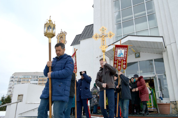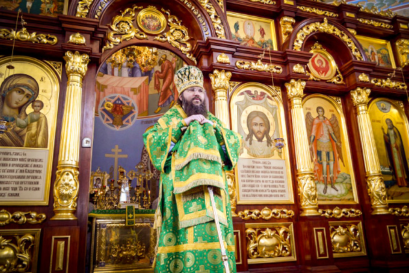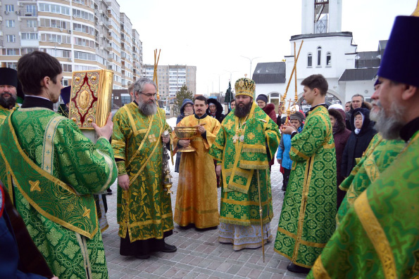 По окончании Литургии духовенство и верующие прошли крестным ходом вокруг храма, после чего епископ Иннокентий обратился к молящимся с архипастырским словом.