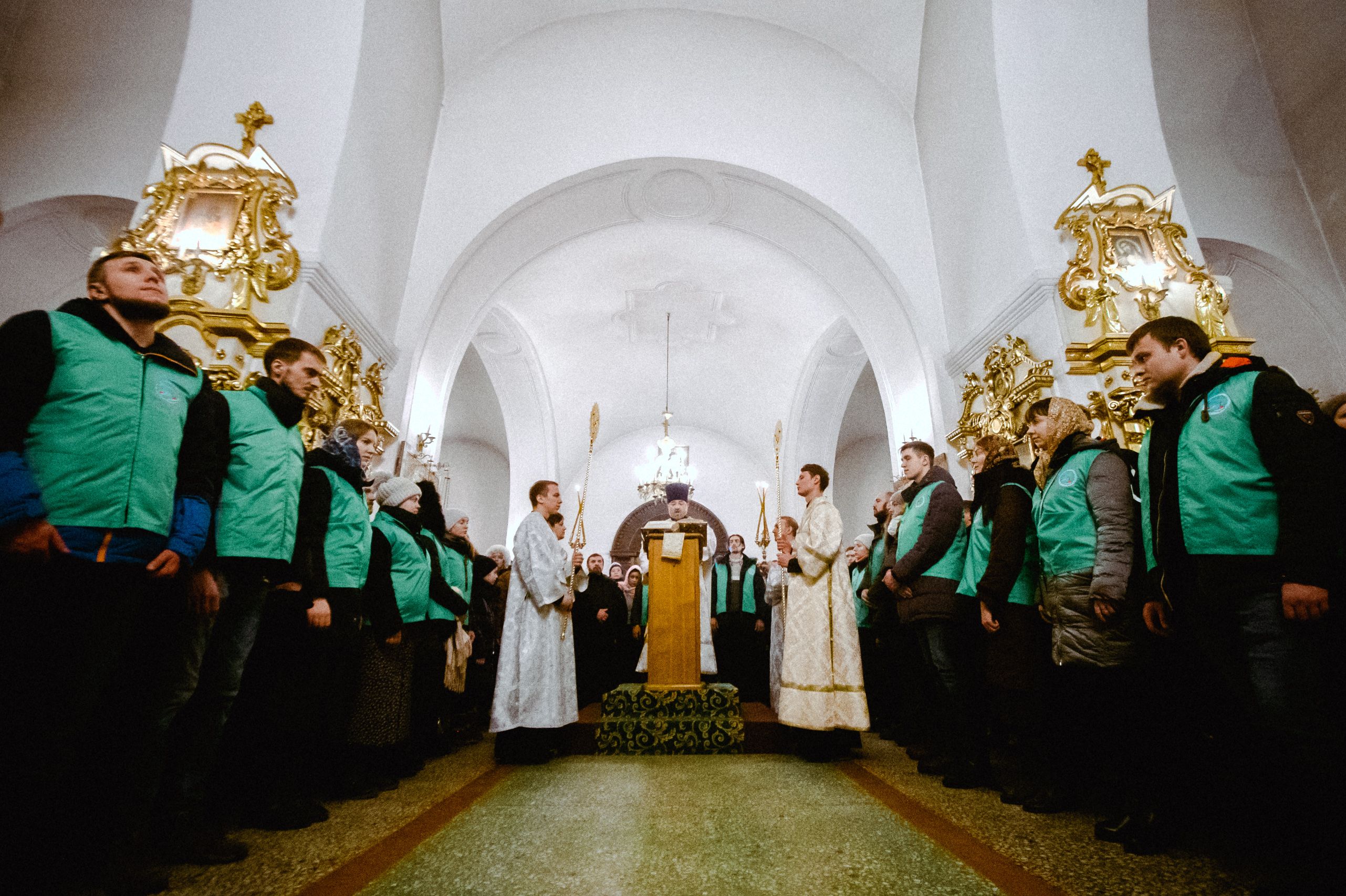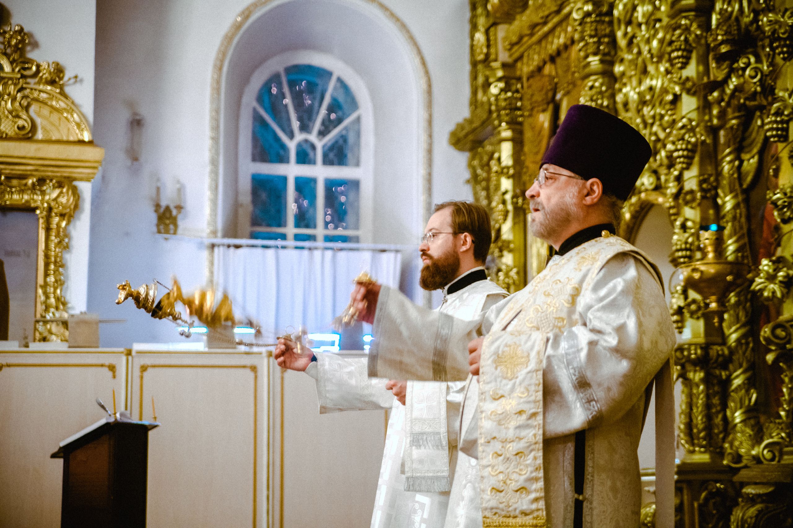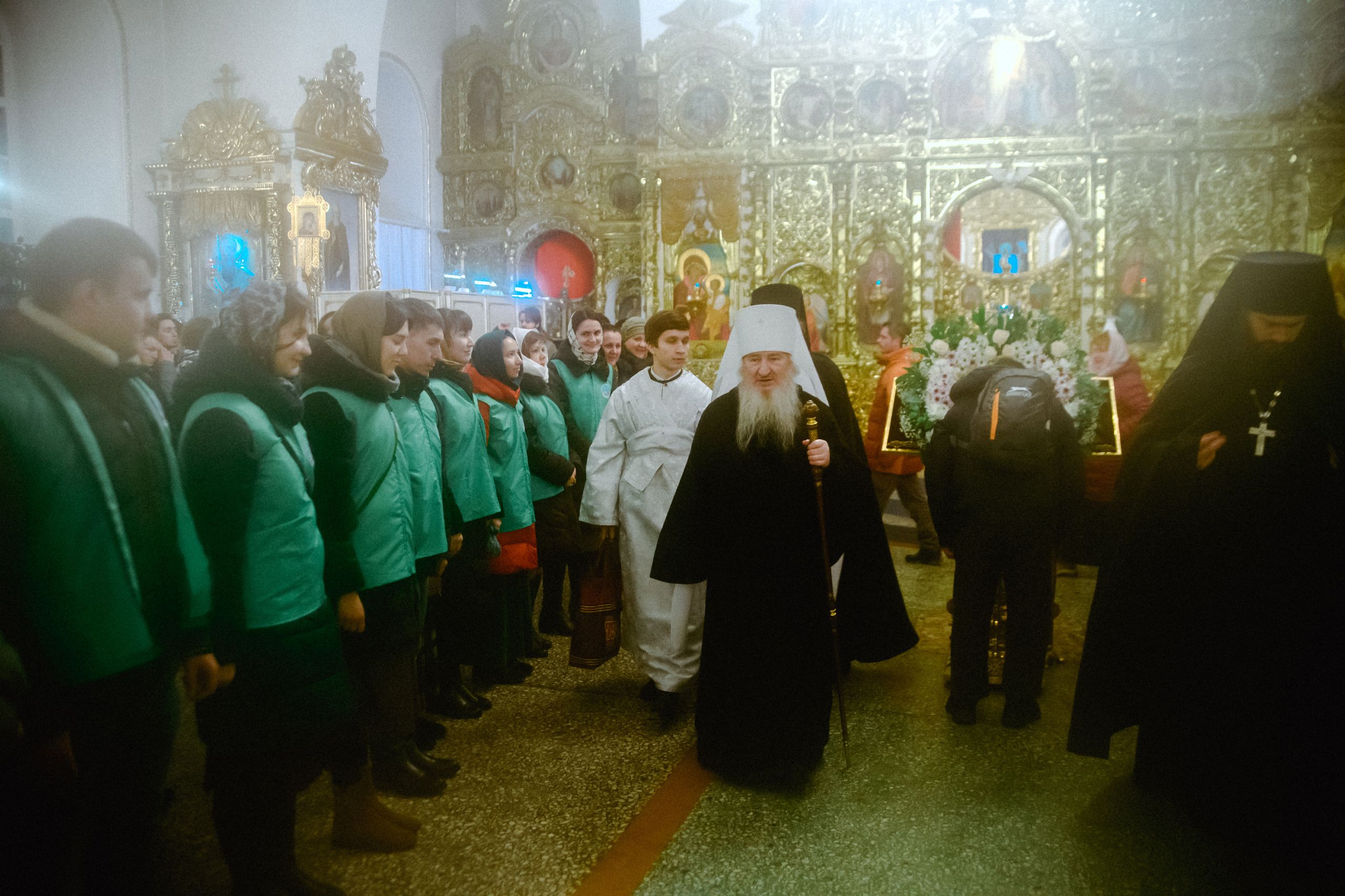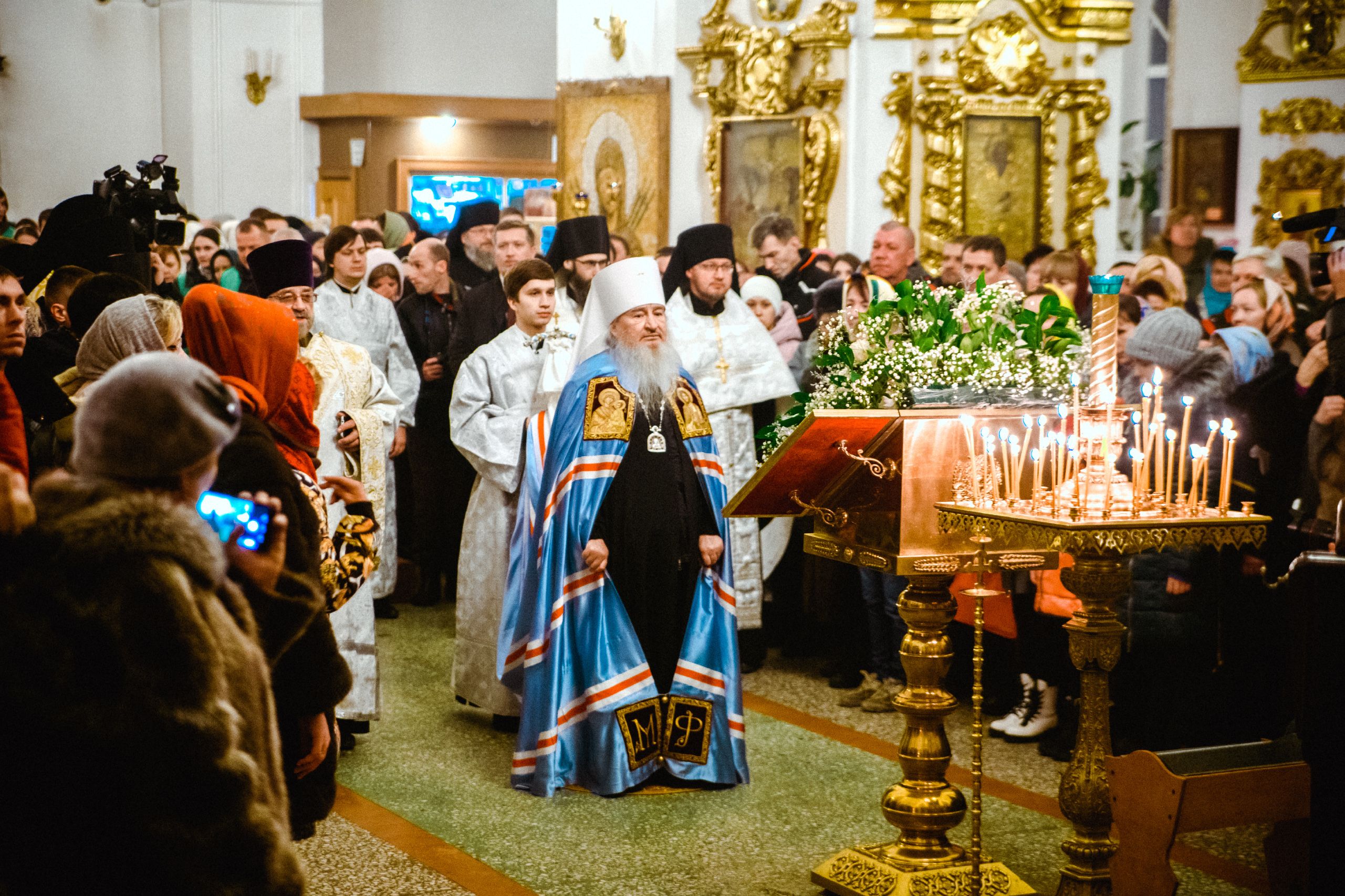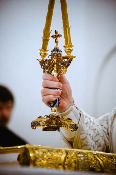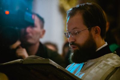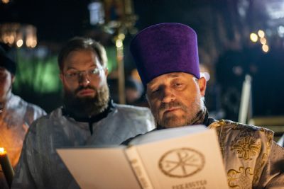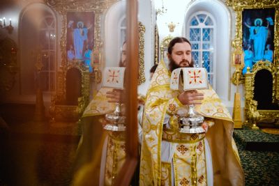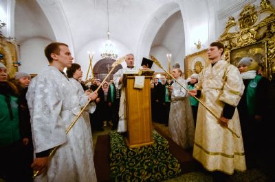 Богослужебные песнопения исполнялись архиерейским мужским хором под управлением Дениса Рогова.