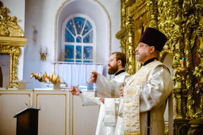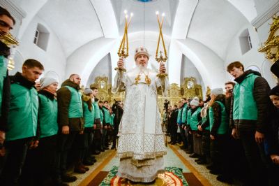 Его Высокопреосвященству сослужили наместник Раифского монастыря игумен Гавриил (Рожнов) и настоятель Введенского Кизического мужского монастыря города Казани игумен Пимен (Ивентьев).