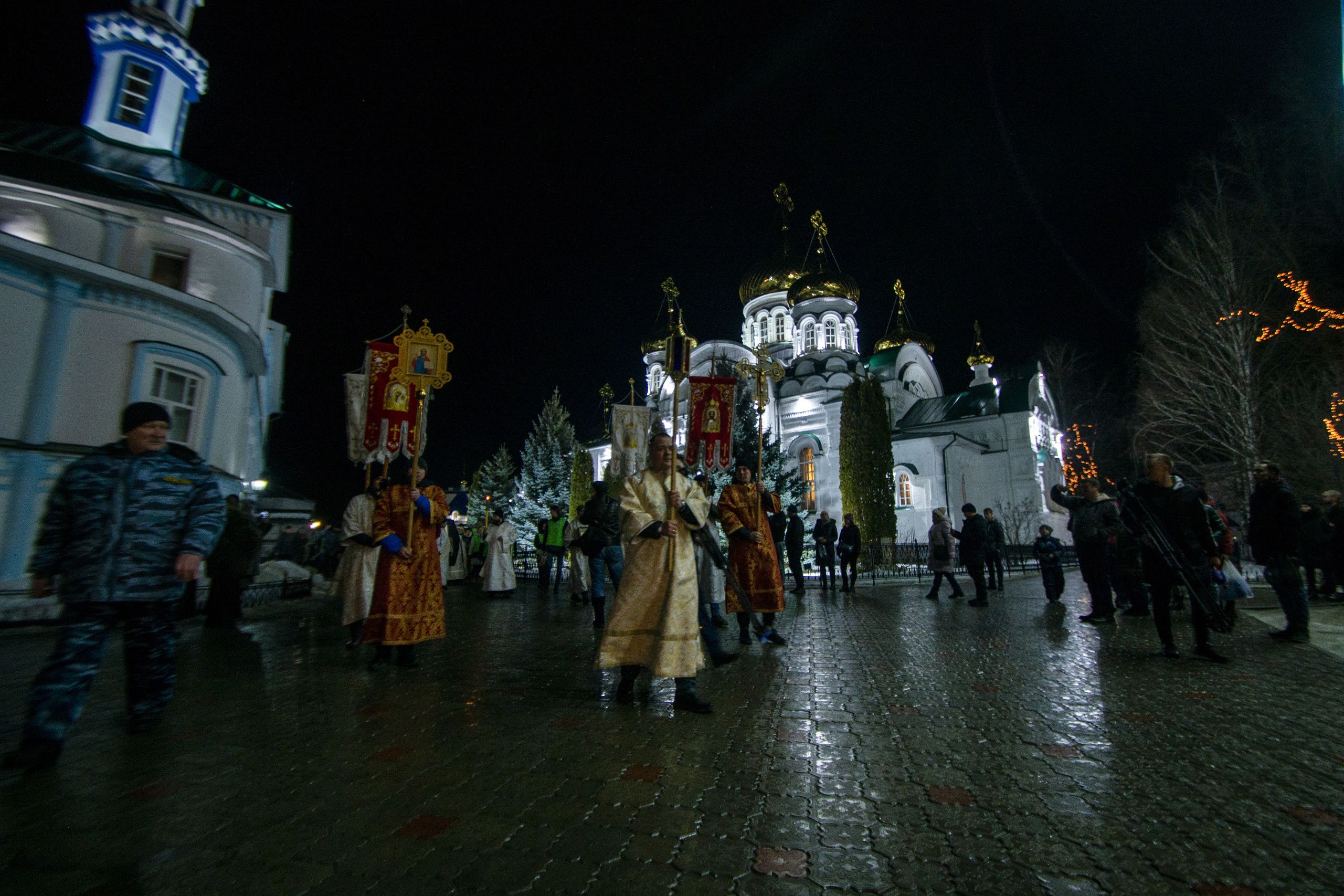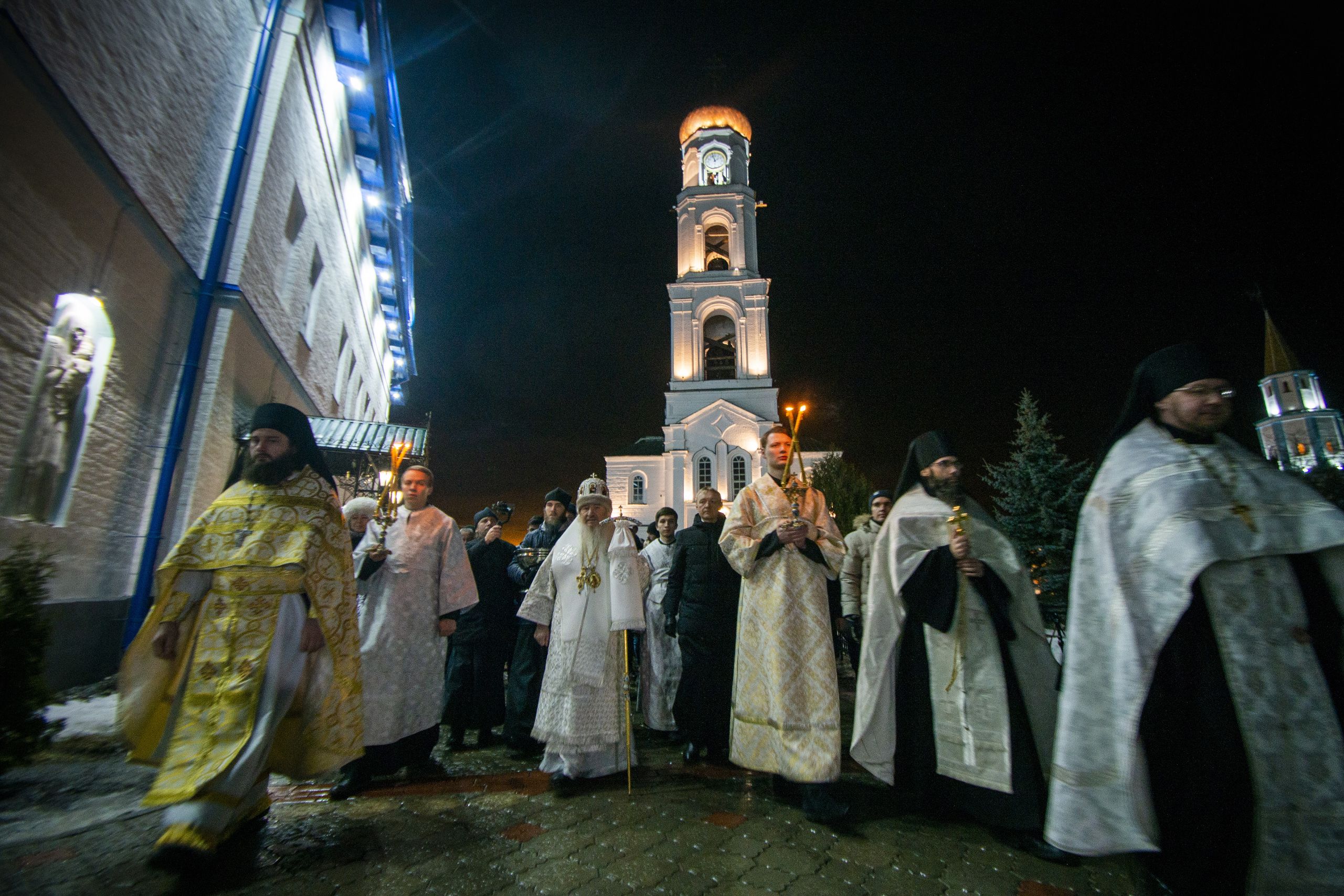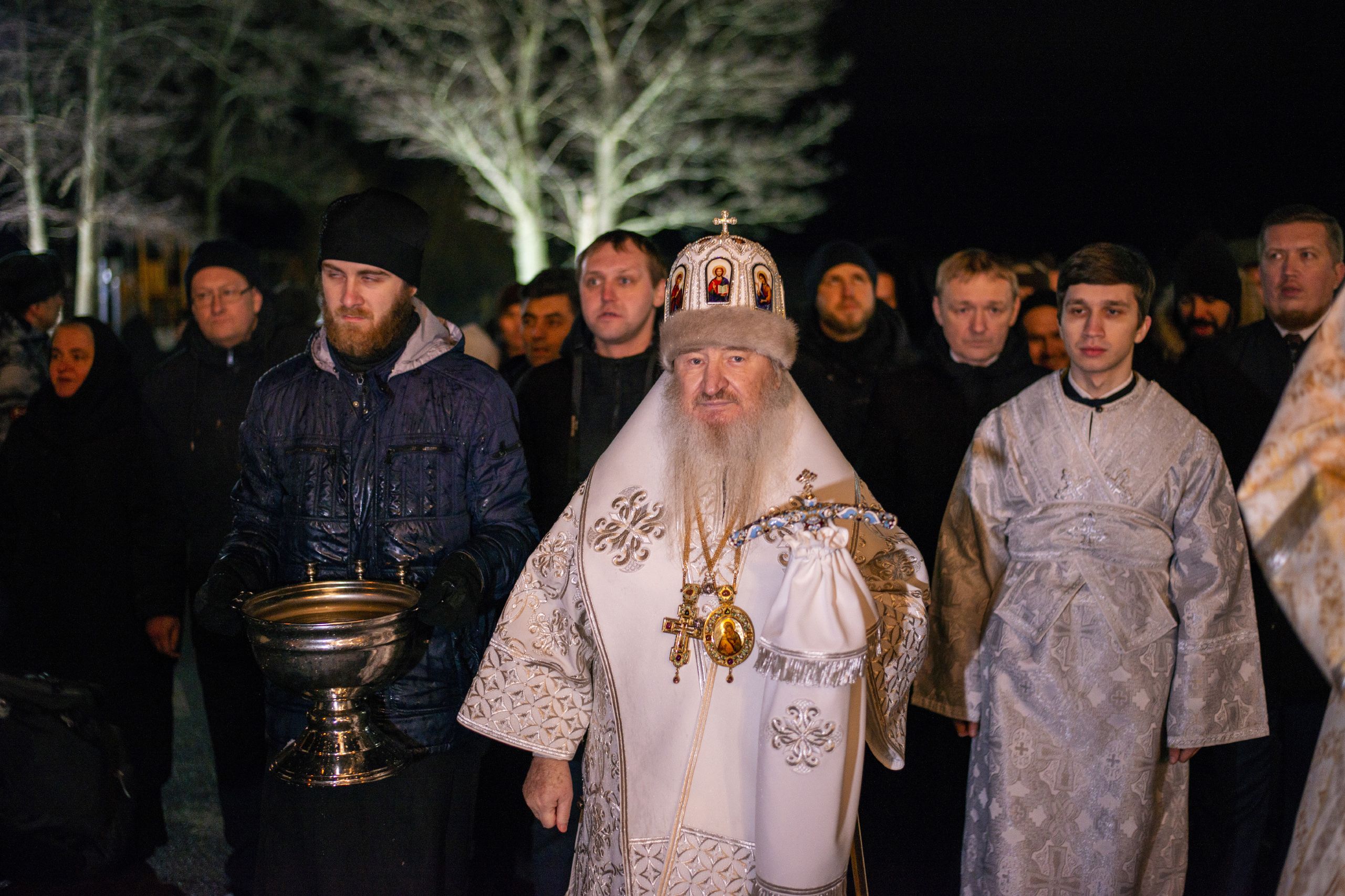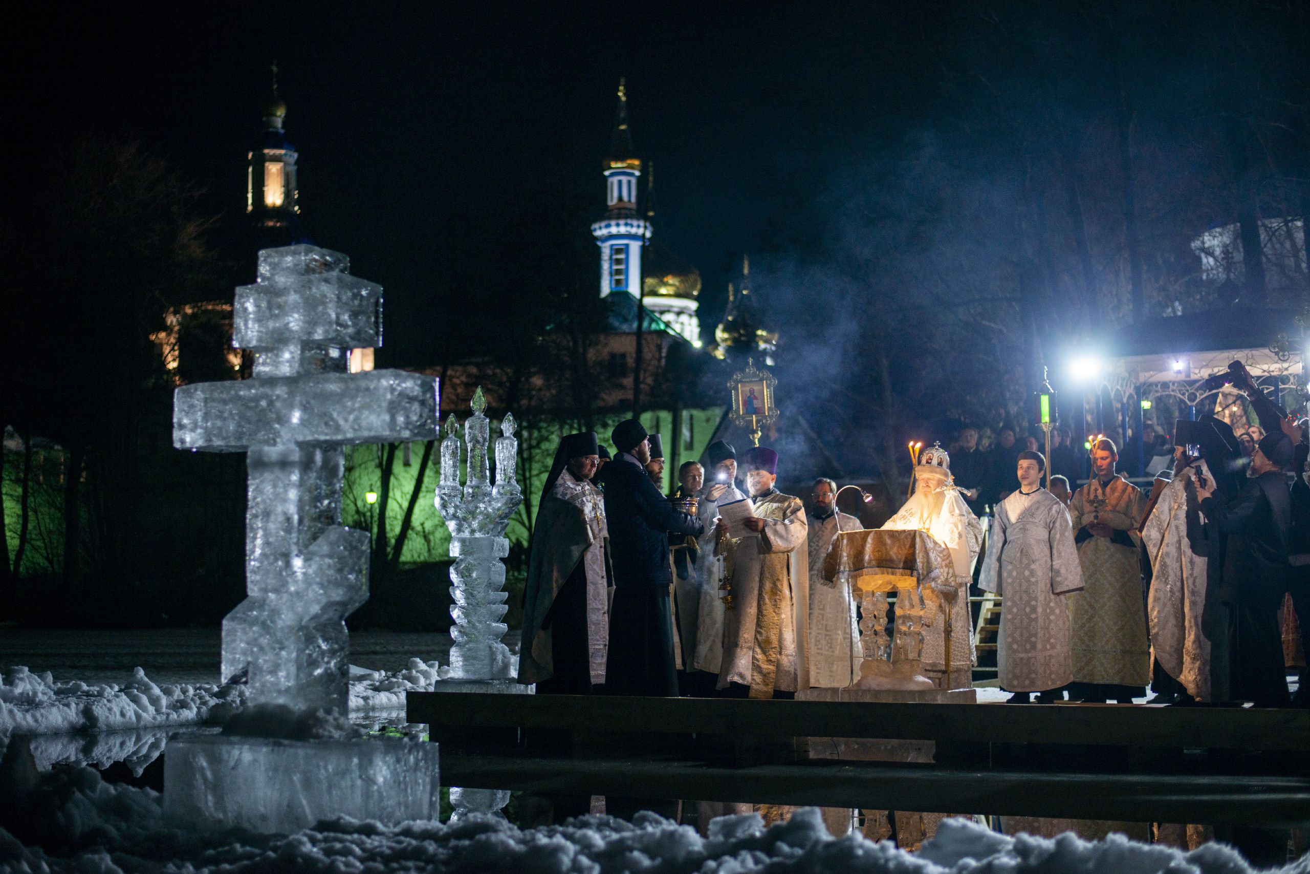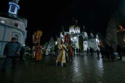 В ночь с 18 на 19 января 2020 года, в праздник Крещения Господа Бога и Спаса нашего Иисуса Христа, митрополит Казанский и Татарстанский Феофан возглавил Божественную литургию святителя Василия Великого в Троицком соборе Раифского Богородицкого мужского монастыря.