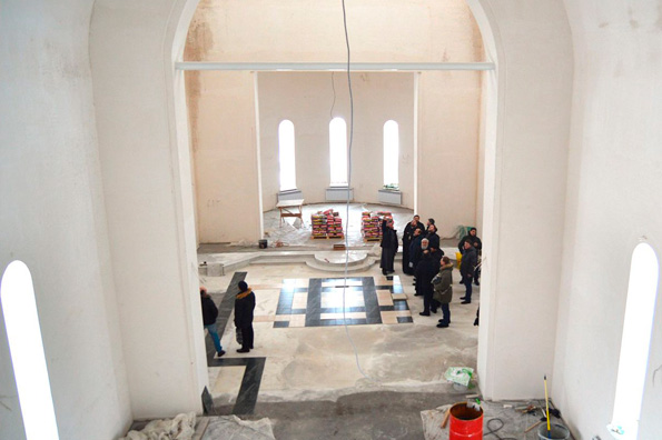 Перед началом собрания настоятели посетили строящийся храм Казанской иконы Божией Матери. В настоящее время строители занимаются отделкой. В скором времени в храме должны уложить напольную плитку и смонтировать иконостас. Настоятель прихода Рождества Христова игумен Василий (Сардаев) провел для гостей экскурсию по храму.