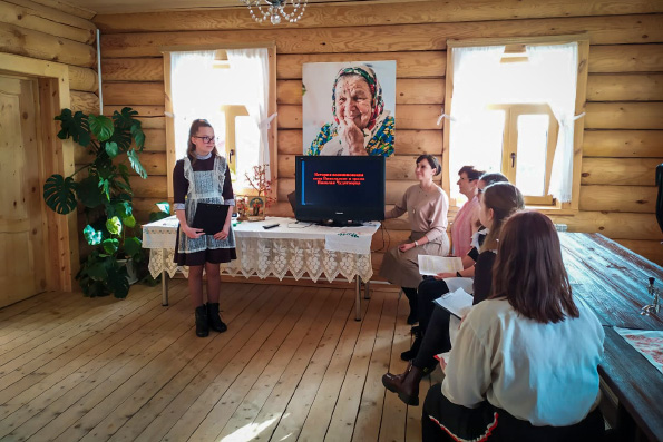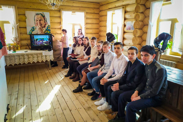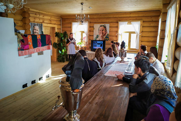 Следующей точкой маршрута стало «Русское Подворье» — музей истории местного фестиваля «Каравон». Школьников встретила директор музея Анастасия Гурьянова. В музее ребята зачитали доклады, посвященные селу Никольское, храму Николая Чудотворца, взгляду современной молодежи на Православие и роли религии в Великой Отечественной войне.