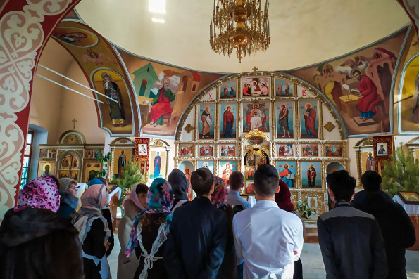 В этот день местный храм святителя Николая Чудотворца посетили учащиеся старших классов сельской школы. Настоятель храма иерей Ярослав Филиппов провел для них экскурсию по храму. Священник рассказал ребятам о строительстве Никольской церкви, обустройстве православного храма, богослужебных предметах и многом другом.