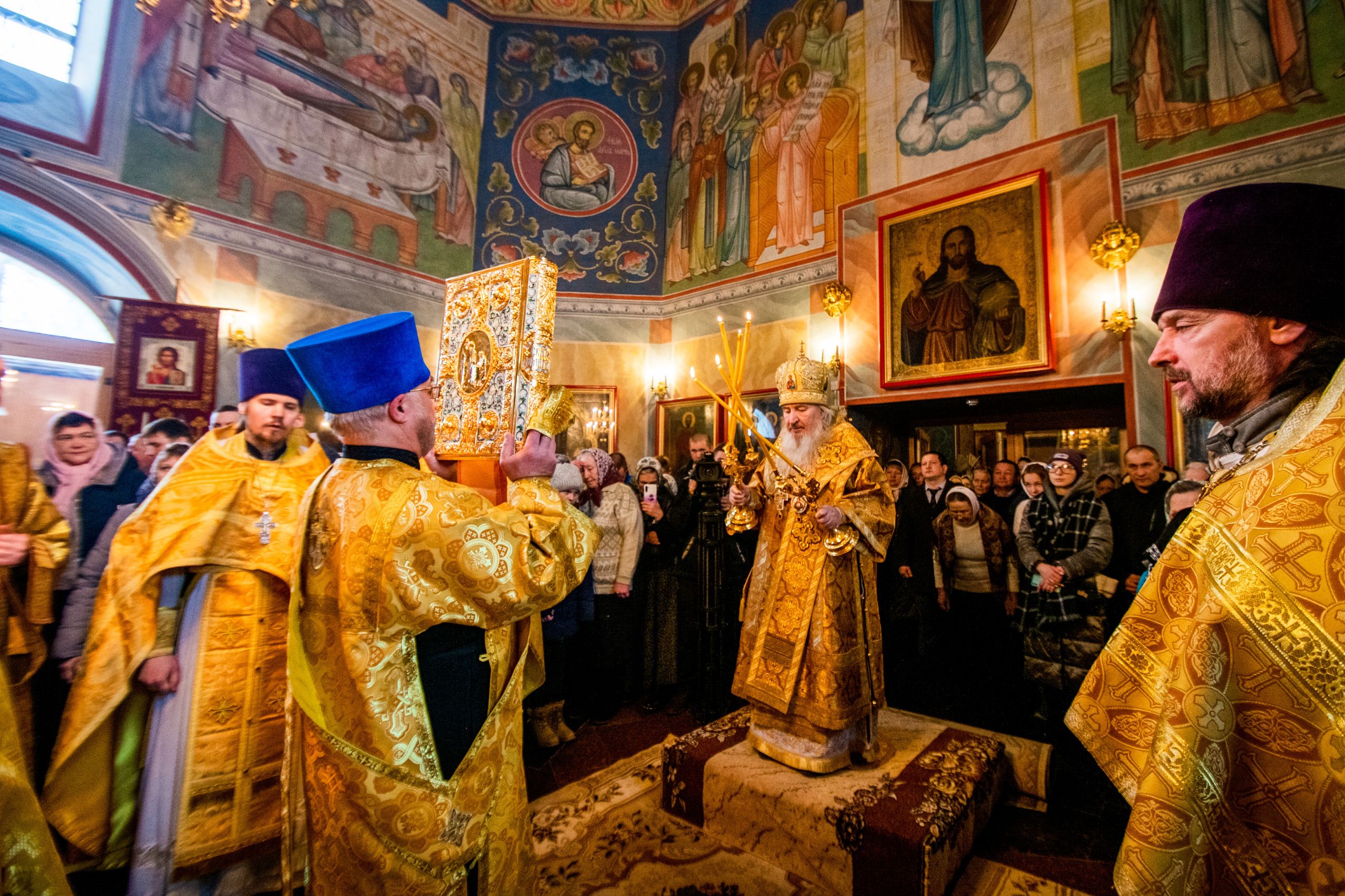 После чтения Евангельского зачала (Мф. 25:31-46) правящий архиерей обратился к молившимся со словом проповеди: