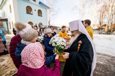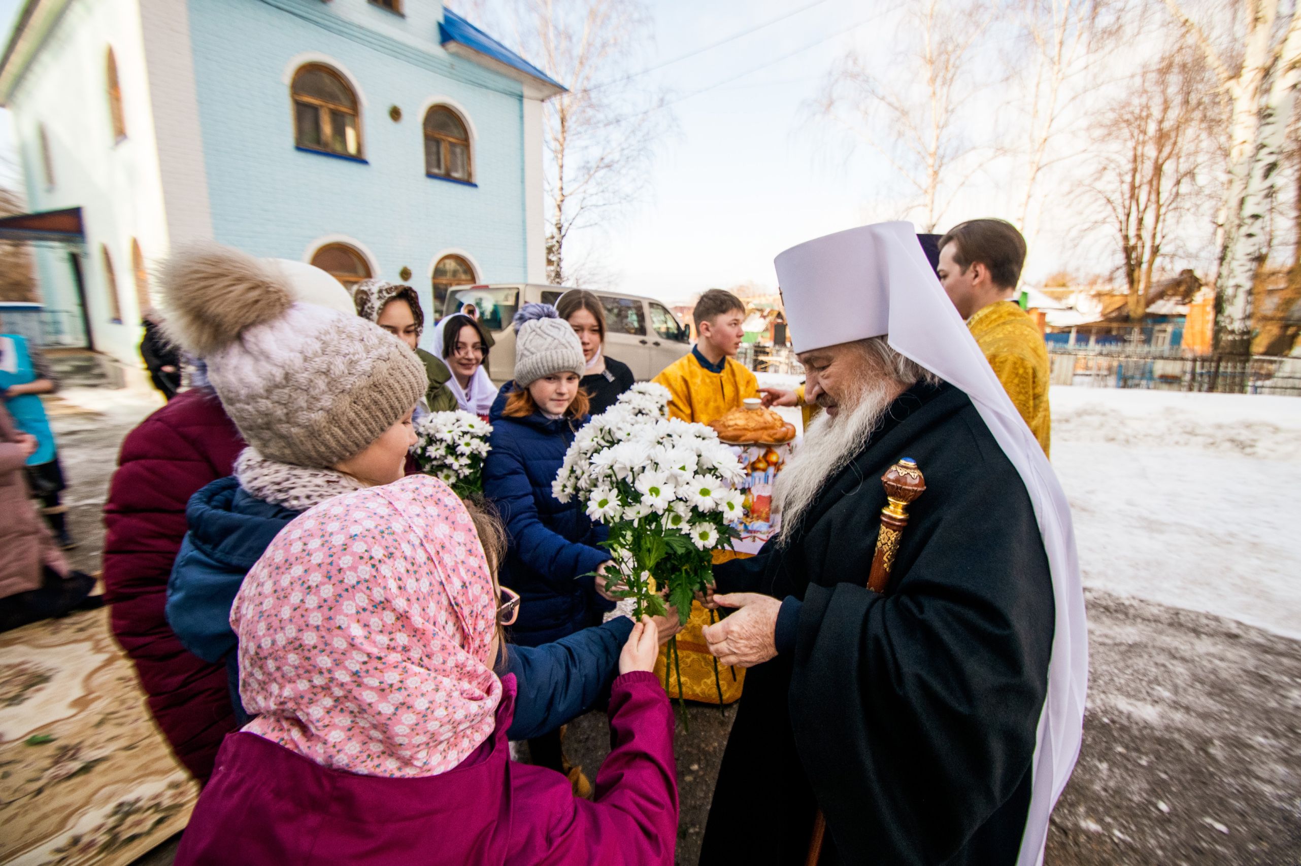 По окончании Литургии глава Татарстанской митрополии поздравил верующих с воскресным днем и призвал всех проповедовать свою веру личным примером среди родных, близких и знакомых. Также архипастырь пообщался с местной православной молодежью, присутствовавшей за богослужением. Владыка Феофан призвал ребят быть активными участниками жизни прихода и всего благочиния.
