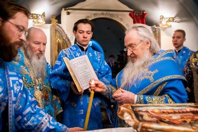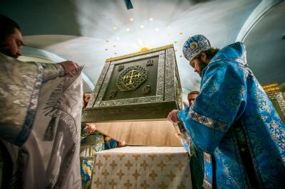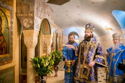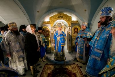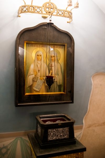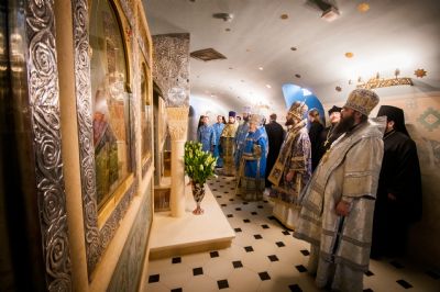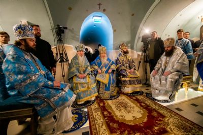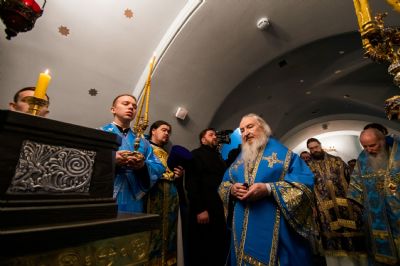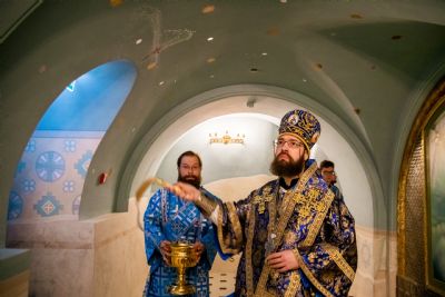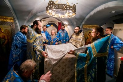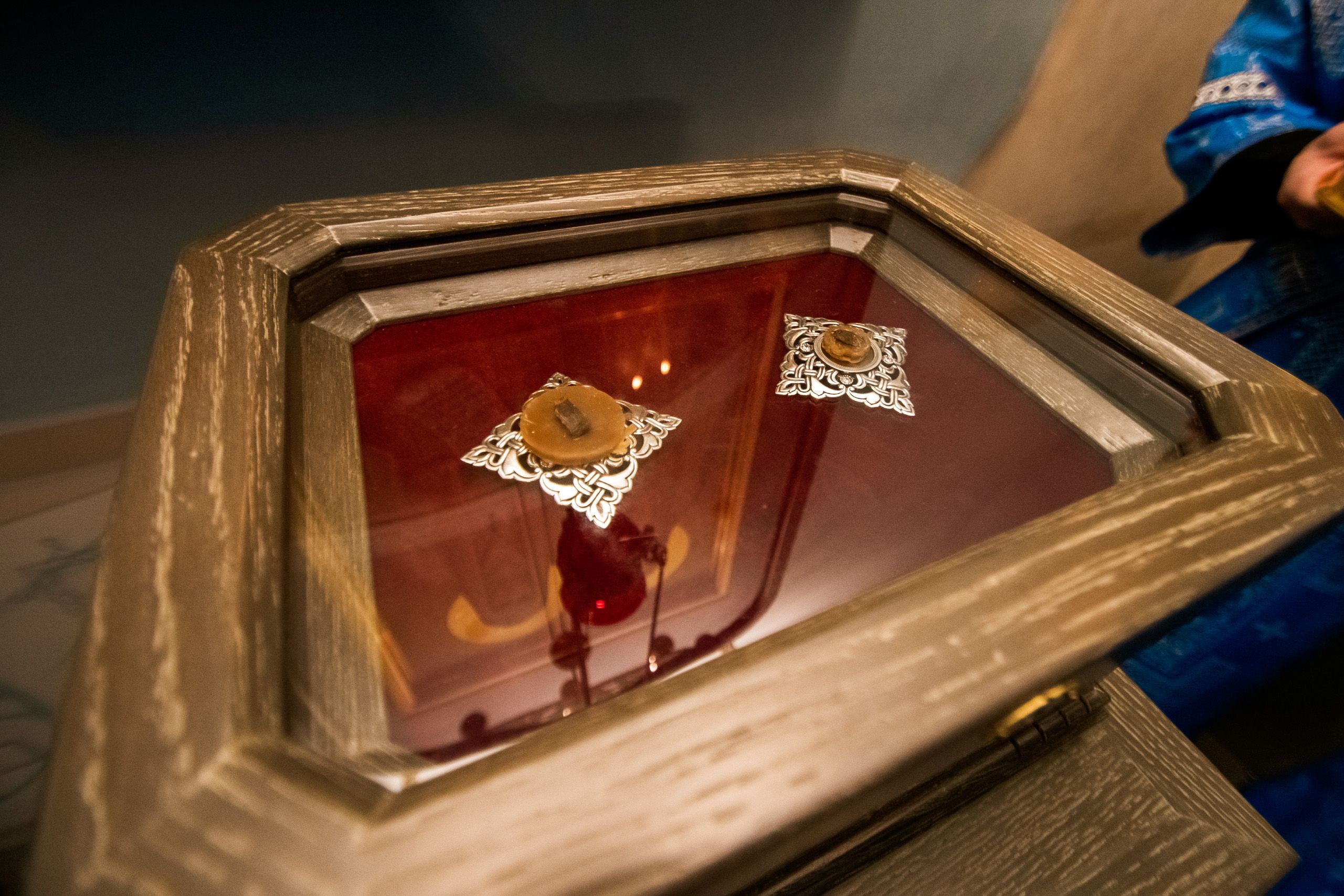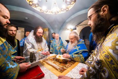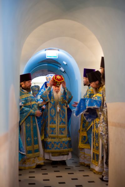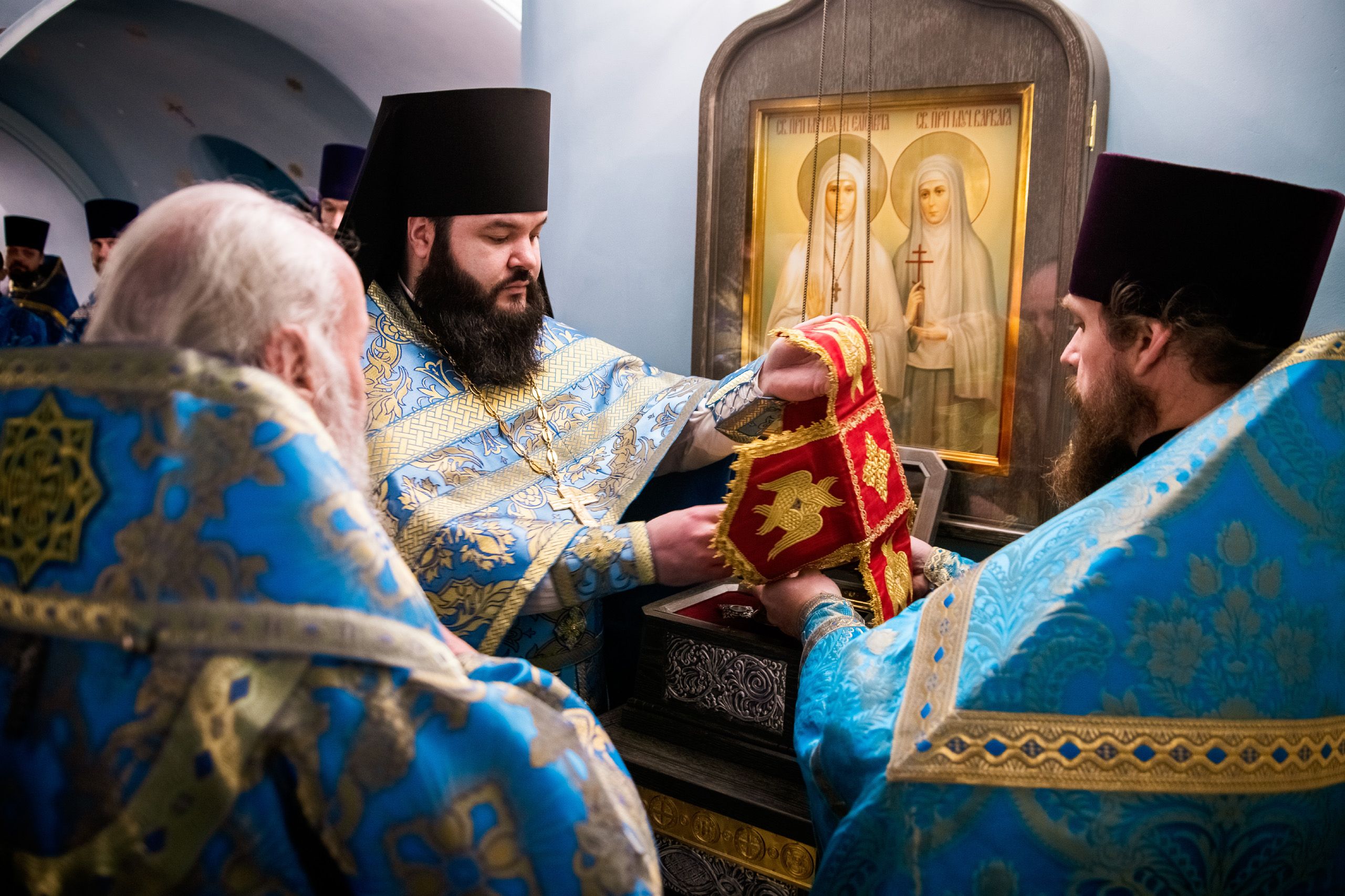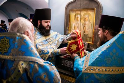 Перед началом богослужения митрополит Марк доставил в монастырь частицы мощей преподобномучениц великой княгини Елисаветы и инокини Варвары (1918 г.). Святыня будет храниться в новоосвященном храме Рождества Богородицы.