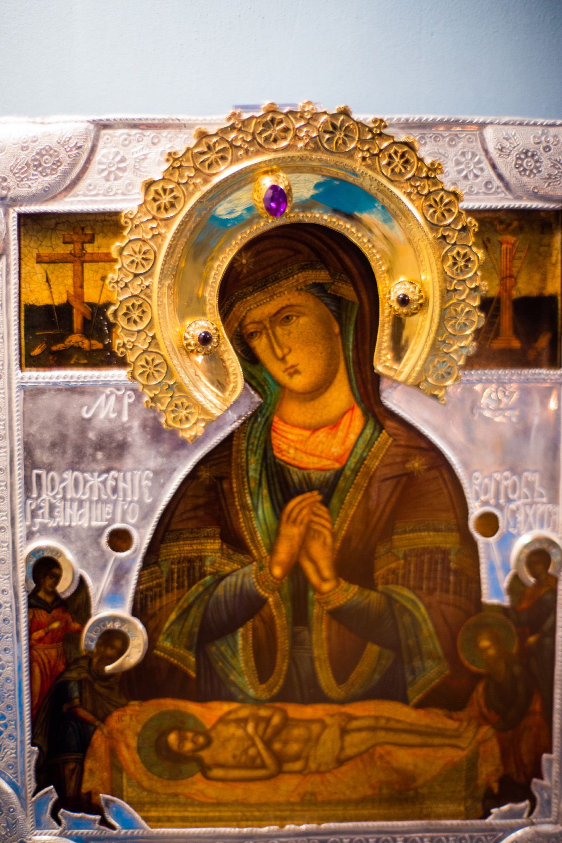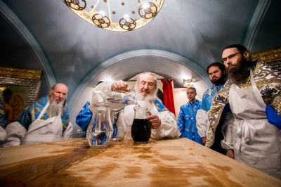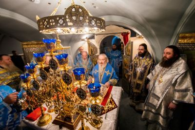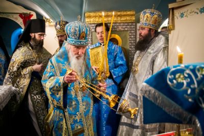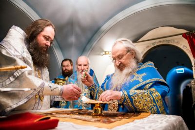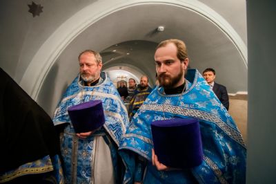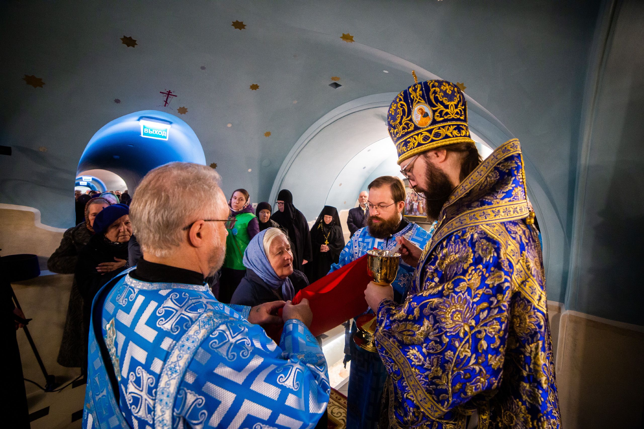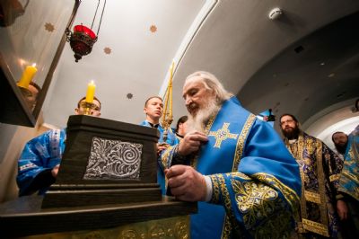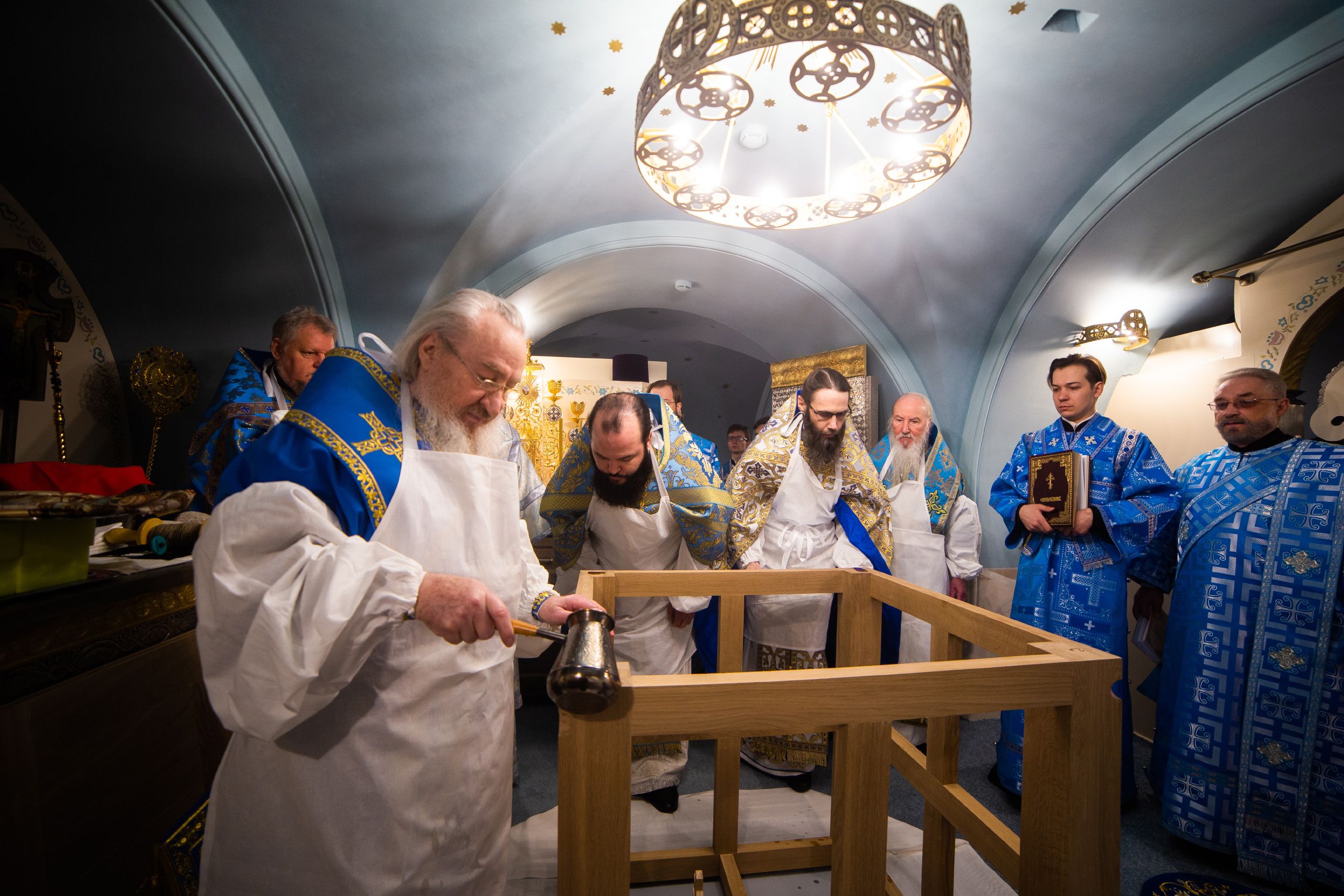 Перед началом богослужения митрополит Марк доставил в монастырь частицы мощей преподобномучениц великой княгини Елисаветы и инокини Варвары (1918 г.). Святыня будет храниться в новоосвященном храме Рождества Богородицы.