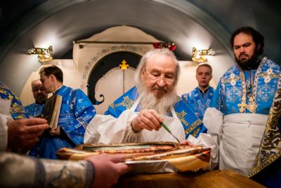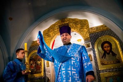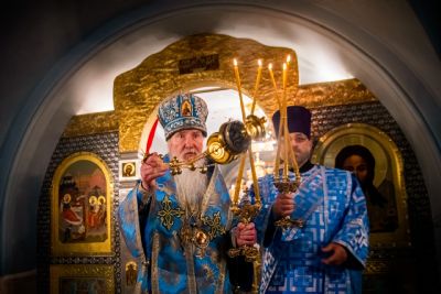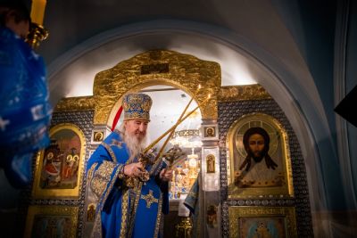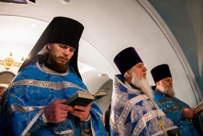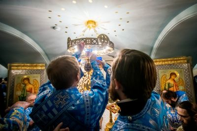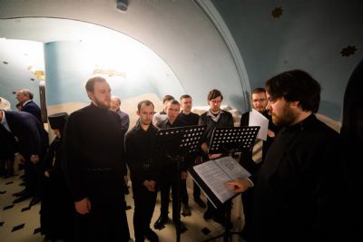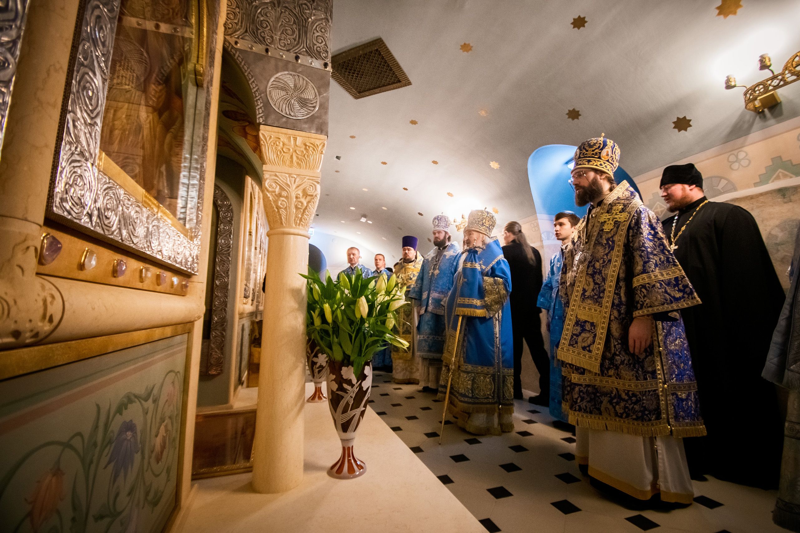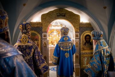 Песнопения праздничного богослужения исполнял архиерейский мужской хор под управлением Дениса Рогова.