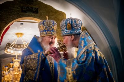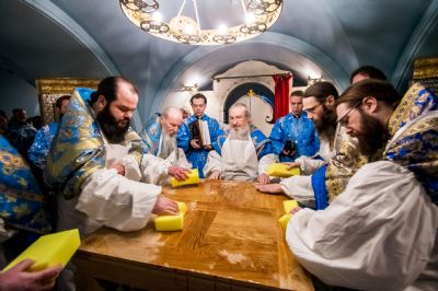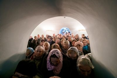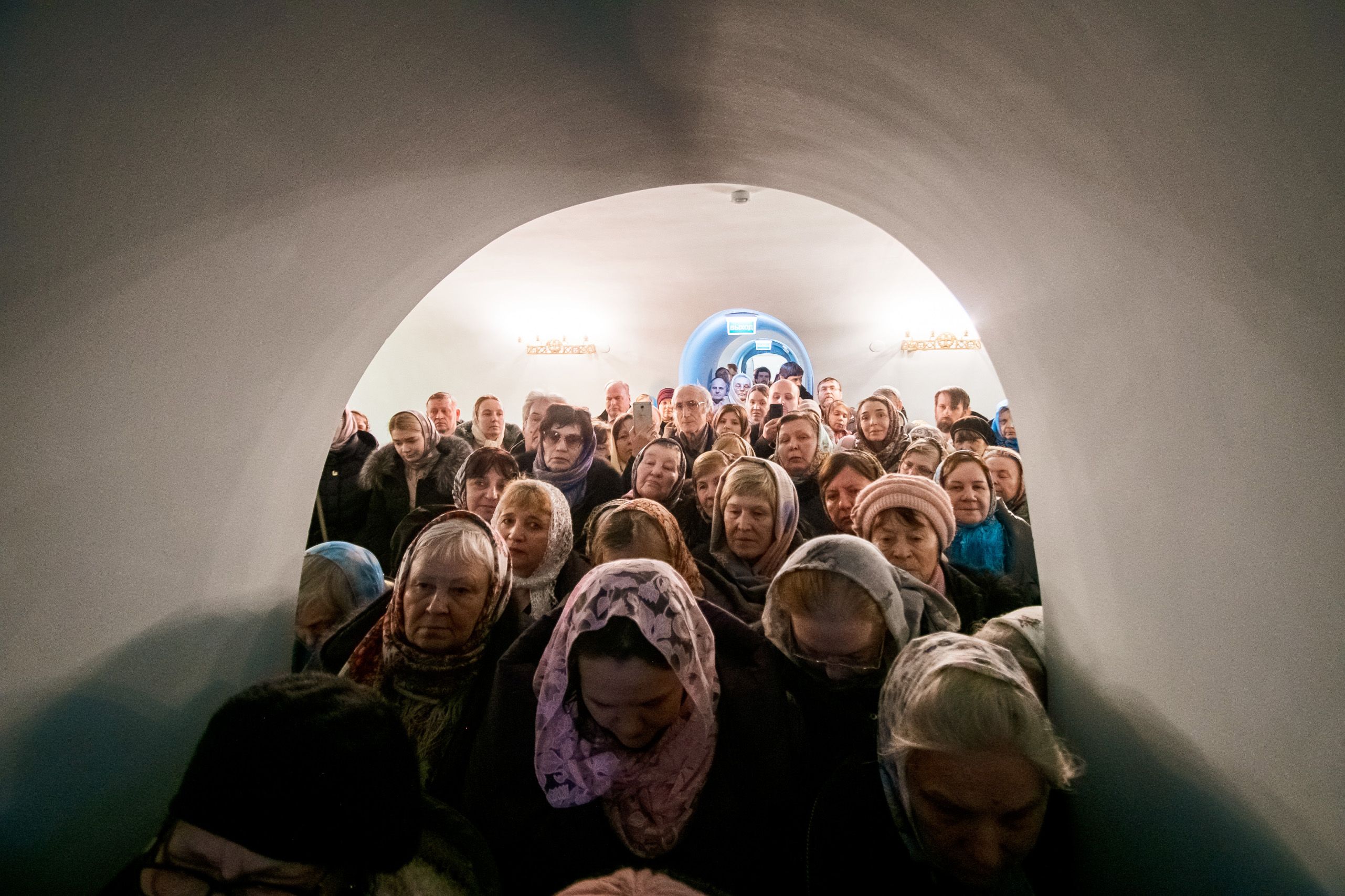 В завершение богослужения архипастыри поклонились месту обретения Казанской иконы Божией Матери и пропели тропарь, кондак и величание Пресвятой Богородице. Верующие приложились к ковчегу с мощами преподобномучениц великой княгини Елисаветы и инокини Варвары.