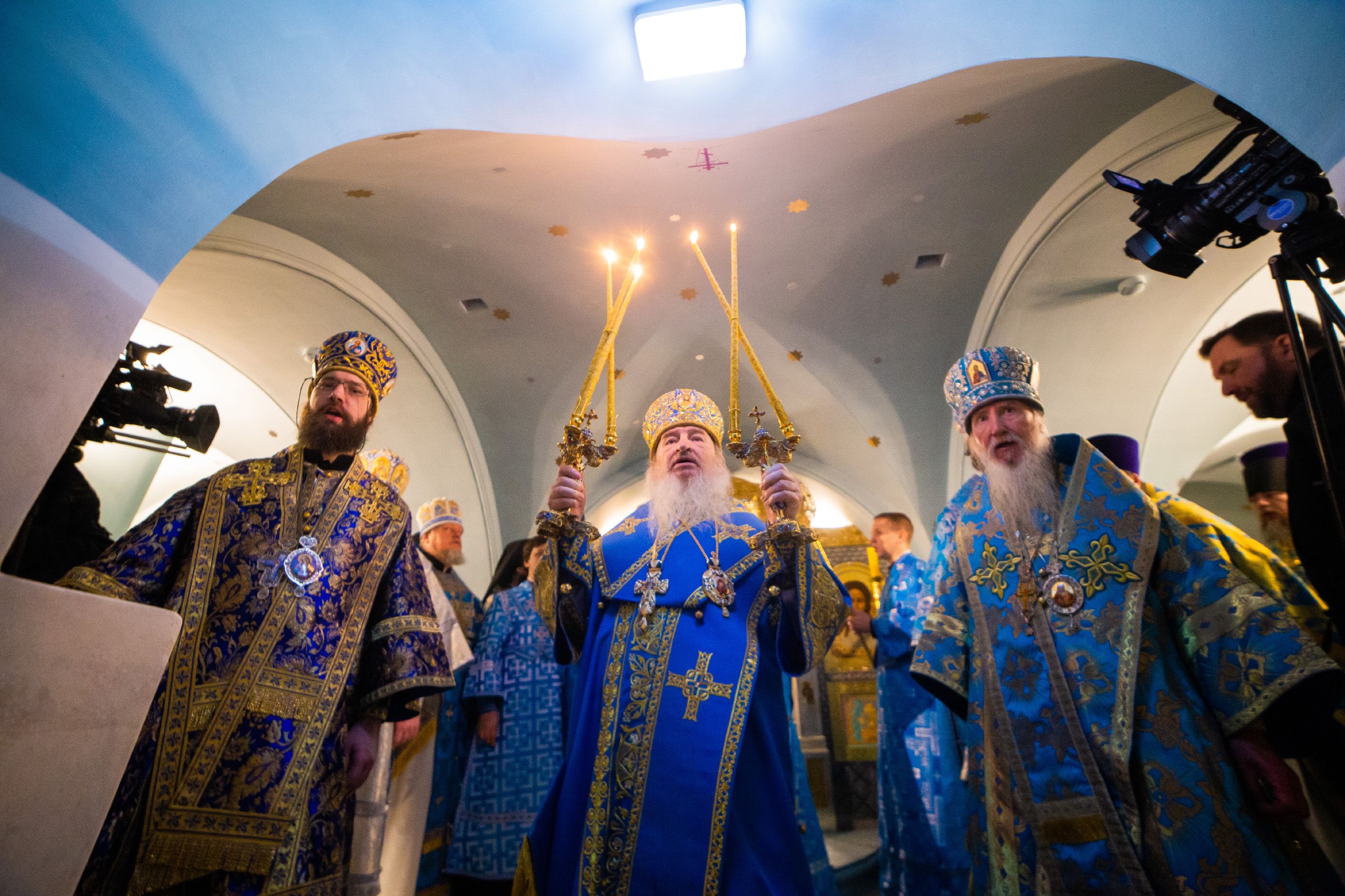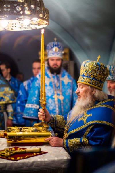 «Я благодарю владыку Савву, который от имени Святейшего Патриарха Кирилла прибыл сегодня к нам на освящение Пещерного храма, — продолжил митрополит Феофан. — Именно Предстоятель Русской Церкви закладывал этот собор, по его благословению ведётся строительство, и мы с большим нетерпением будем ждать, чтобы он прибыл для освящения нашего великолепного храма».