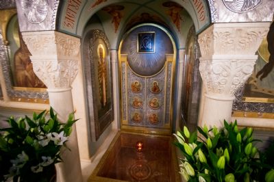 «Четыре года назад я присутствовал здесь, когда заложили первый камень в строительство этого величественного храма. Я узнал, что великая княгиня Елизавета в свою бытность здесь вдохновила на строительство в нём Пещерного храма. Тогда для меня было ясно, что сюда необходимо привезти частицу мощей. И когда владыка Феофан сообщил мне, что нижний храм готов, я сделал всё, что мог, чтобы в этот день быть здесь и участвовать в этом великом празднике.