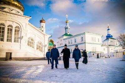 Визит начался с экскурсии по территории монастыря, которую провел наместник обители игумен Гавриил (Рожнов). В музее истории, расположенном в юго-восточной башне Раифского монастыря, отец Гавриил рассказал о самых заметных событиях его 400-летней истории, продемонстрировал раритетные экспонаты хранилища, а также макет обители. Затем гости посетили храм Грузинской иконы Божией Матери, где приложились к чудотворному образу Богородицы «Грузинская».