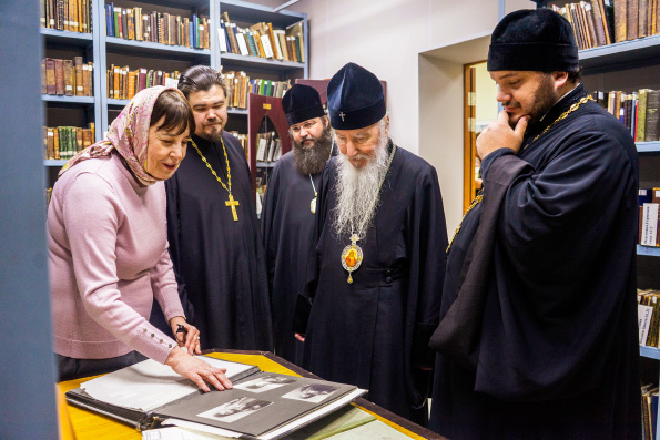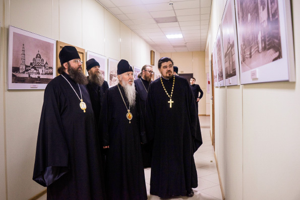 Перед встречей с воспитанниками духовной школы митрополит Марк в сопровождении викария Казанской епархии епископа Елабужского Иннокентия, первого проректора КазПДС протоиерея Алексия Колчерина и преподавателей совершил экскурсию по семинарии.