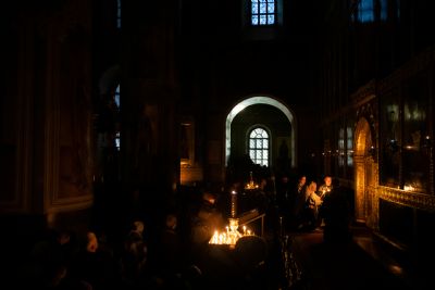 После малого входа был возглашен Великий прокимен «Не отврати лица Твоего...» Затем архипастырь и сослужившее Его Высокопреосвященству духовенство переоблачились в черные ризы.
