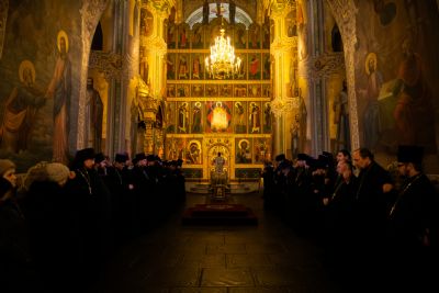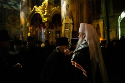 Затем митрополит Феофан испросил прощения у духовенства и всех присутствующих и прочитал молитву перед началом Святой Четыредесятницы.