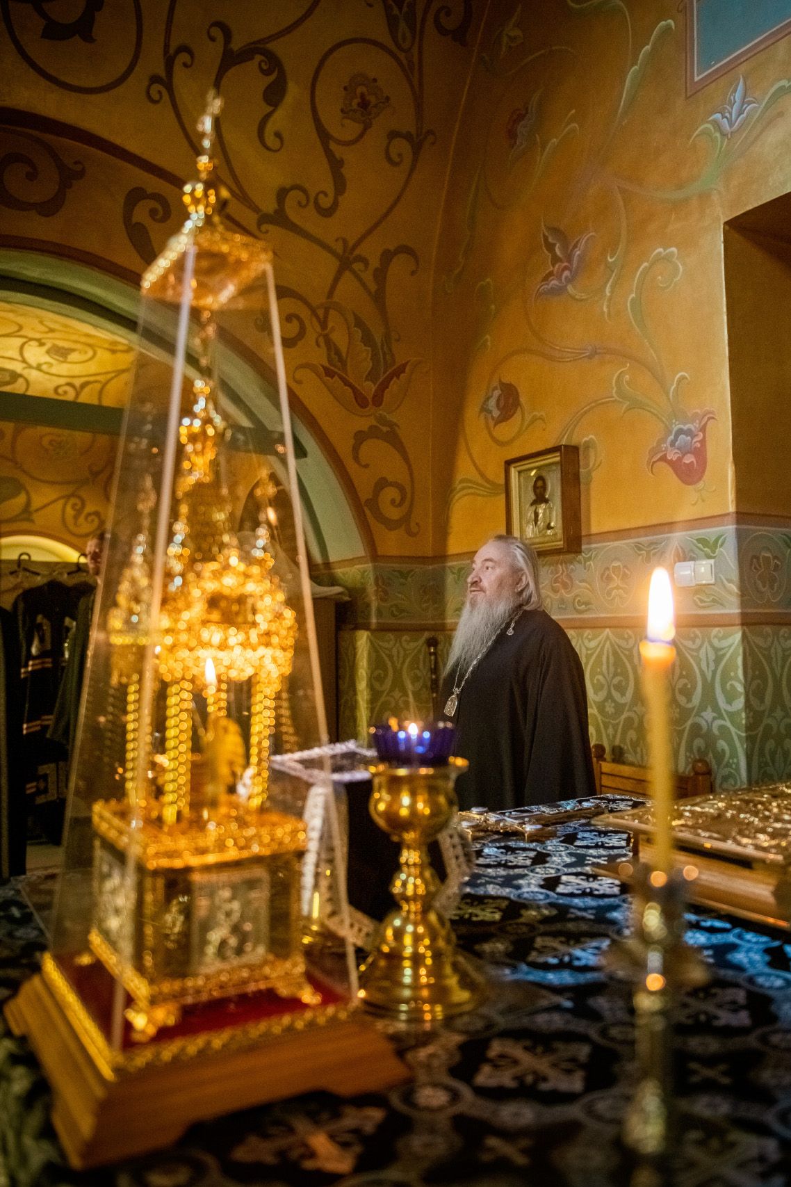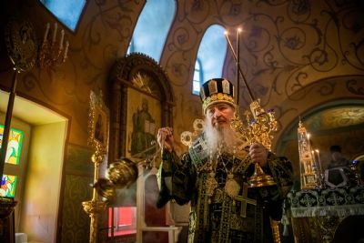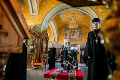 Его Высокопреосвященству сослужили настоятель Введенского Кизического мужского монастыря города Казани игумен Пимен (Ивентьев) и клирики монастыря — протоиерей Сергий Дятлов и иерей Владимир Луценко.