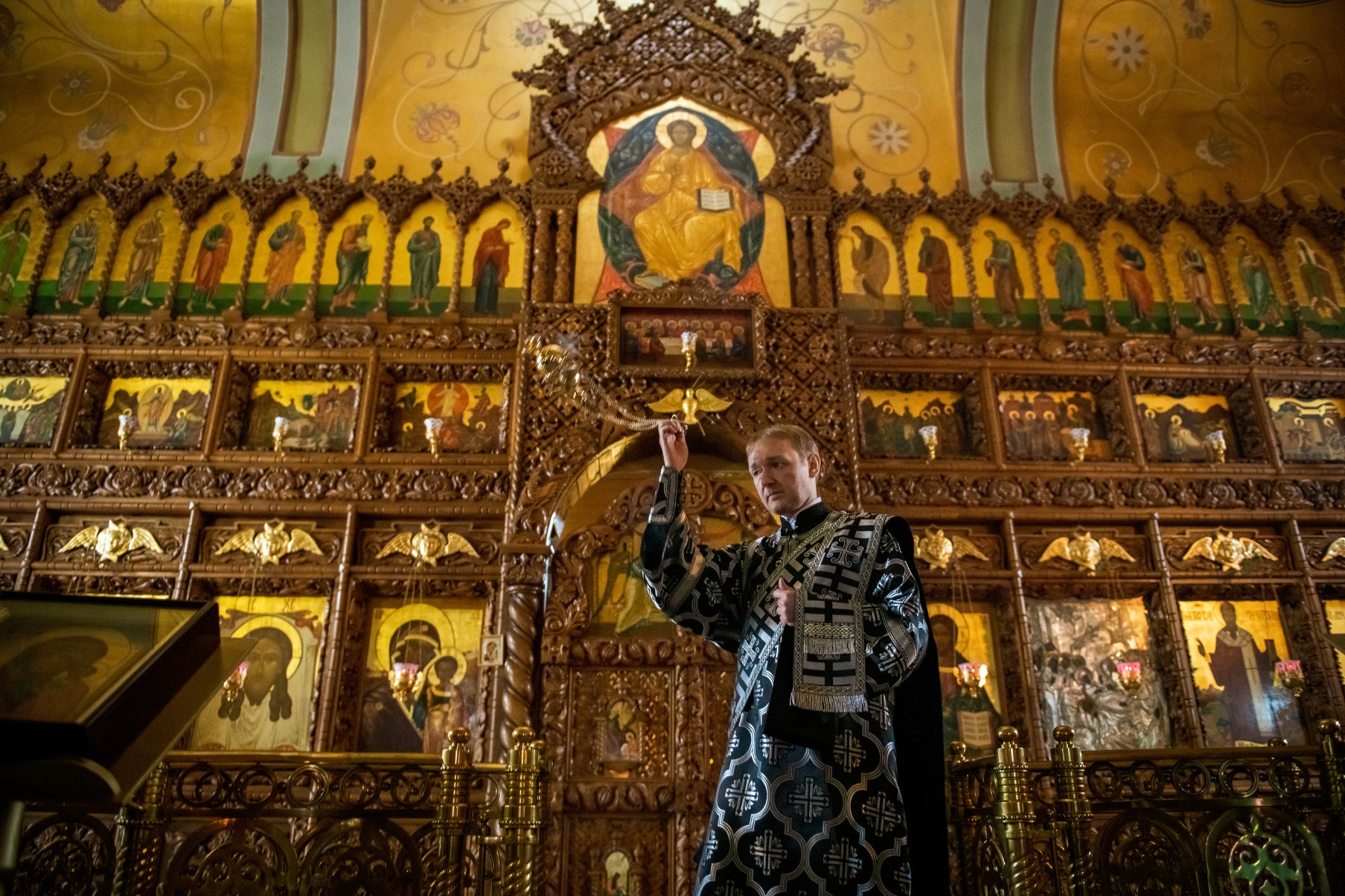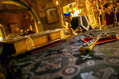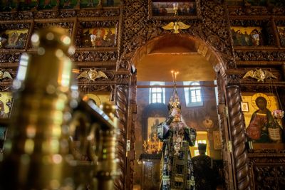 Перед Литургией правящий архиерей молился за уставным богослужением — утреней, часами и изобразительными.